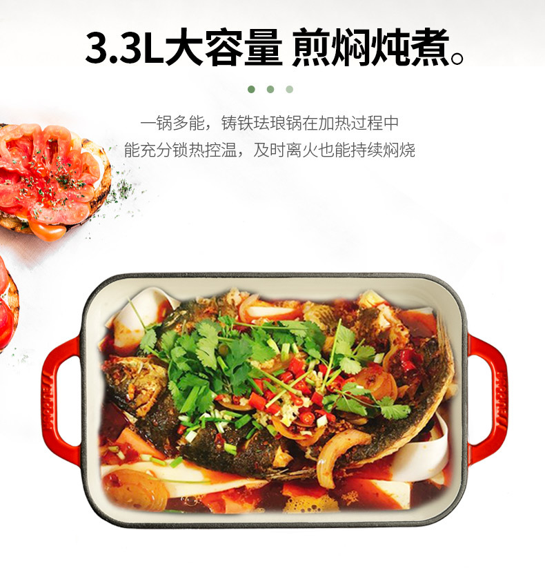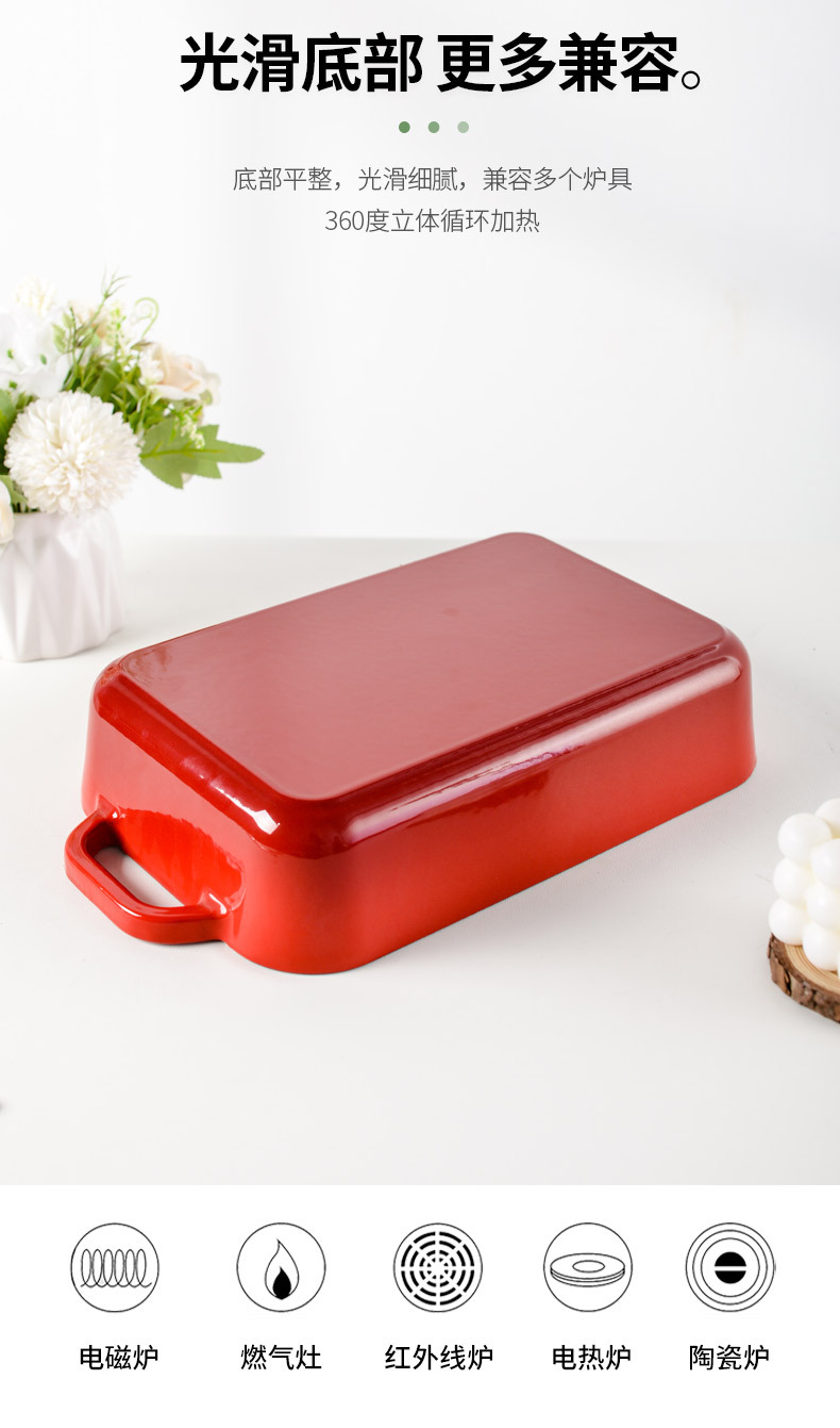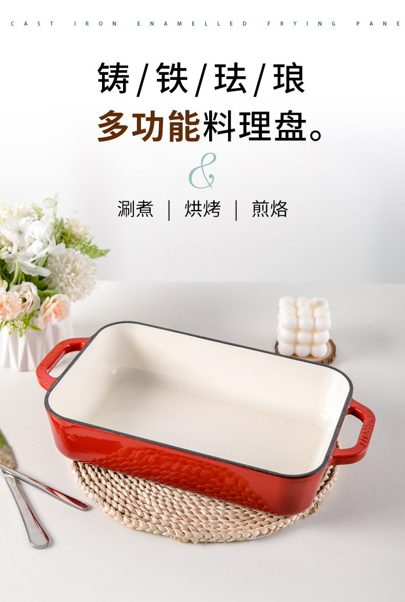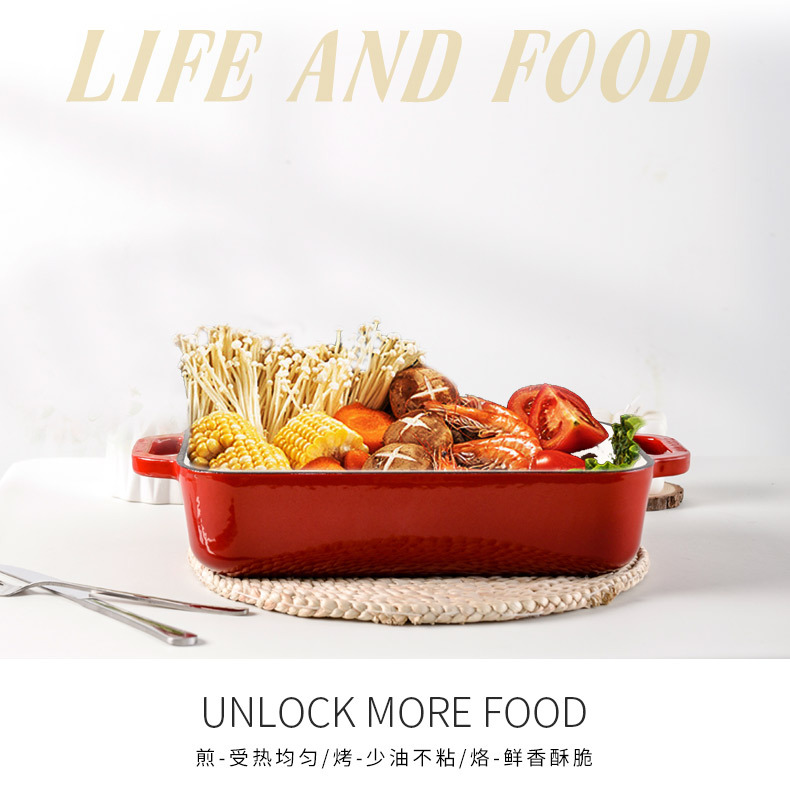 Pequeña felicidad hierro fundido esmalte olla binaural horno de arroz hornear placa de cocción horno placa occidental barbacoa parrilla pescado filete fritura placa