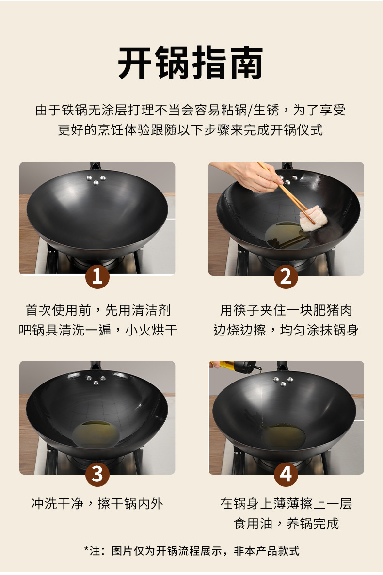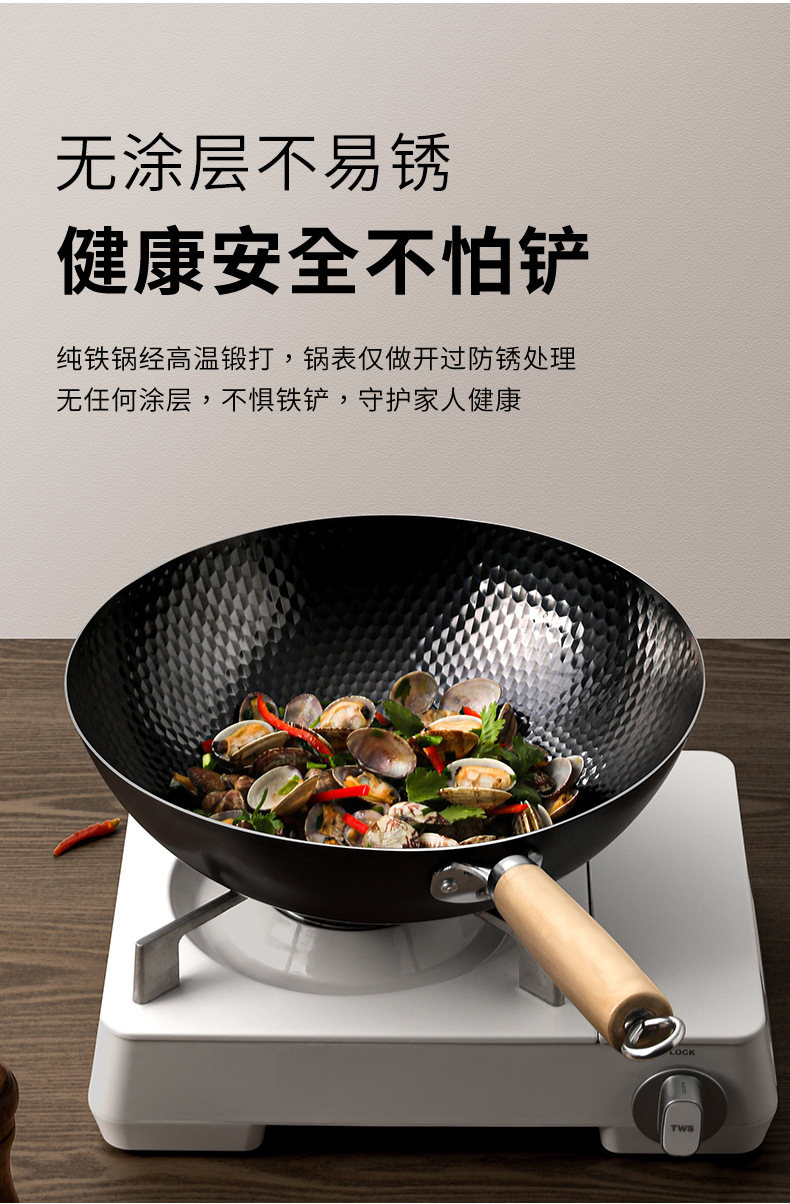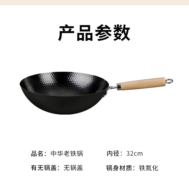 Nueva olla de hierro vieja china, olla de cocción doméstica de 32cm, wok sin recubrimiento, wok de estufa universal, sartén
