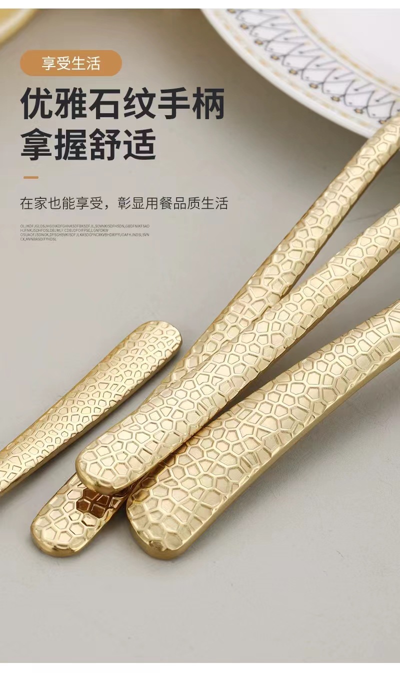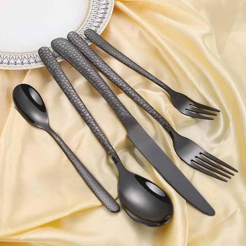 Nuevo estilo transfronterizo vajilla de acero inoxidable Cuchillo, tenedor y cuchara de comida occidental Cuchillo y tenedor de patrón de martillo de luz de luna Cuchillo y tenedor de restaurante occidental de hotel Cuchillo y cuchara de postre