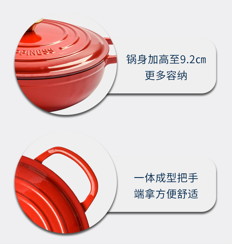 Pequeña felicidad esmalte olla de hierro fundido olla estofada olla al horno olla de La Reina cazuela olla de guiso multifuncional olla de sopa doméstica olla antiadherente