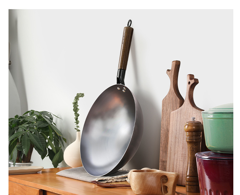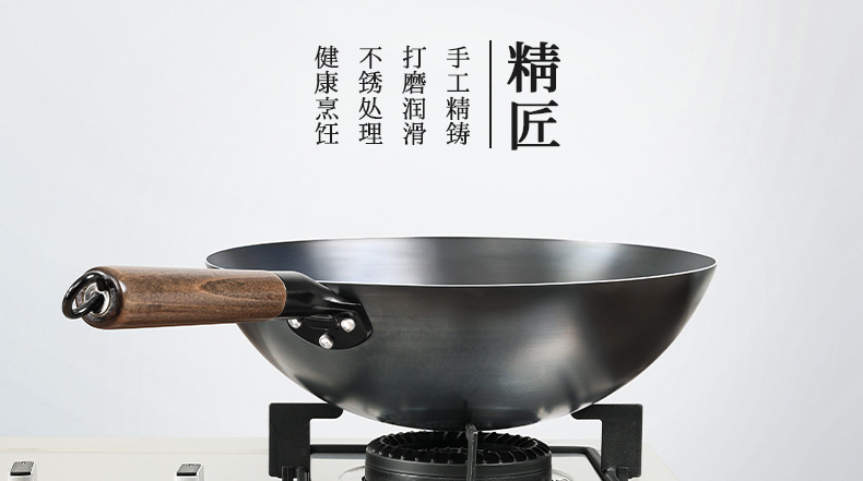 Olla de hierro fundido hecha a mano pasada de moda 0 sartén antiadherente recubierta sartén de fondo redondo wok doméstico sartén de estufa universal