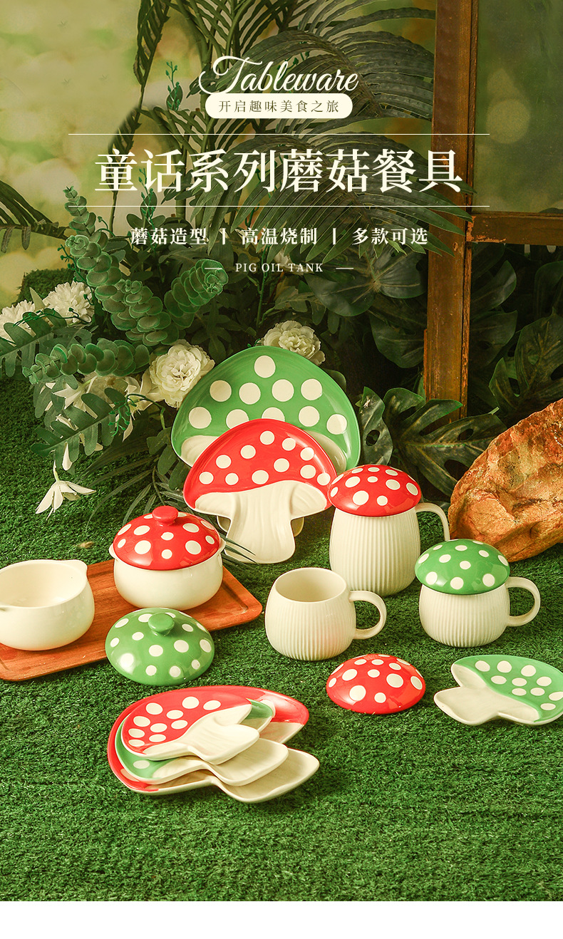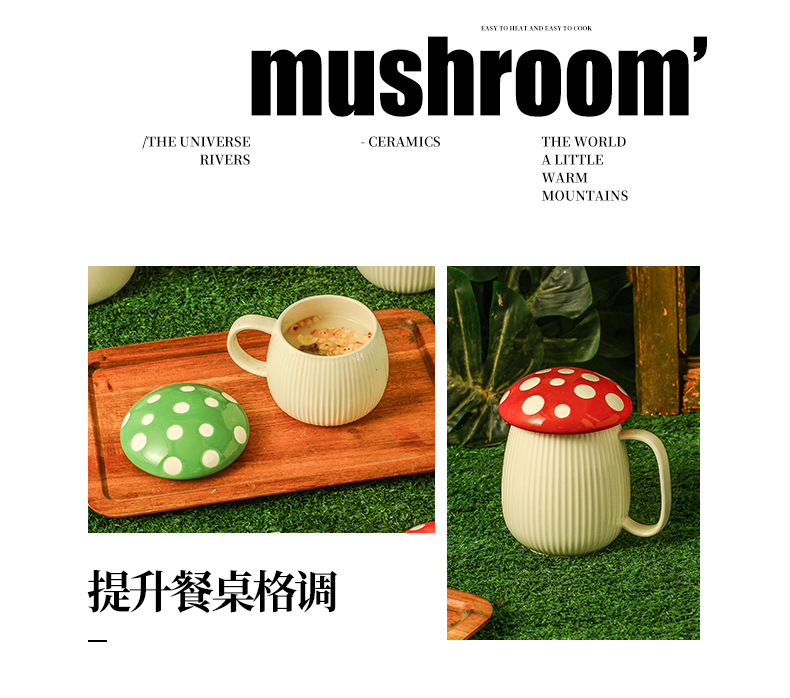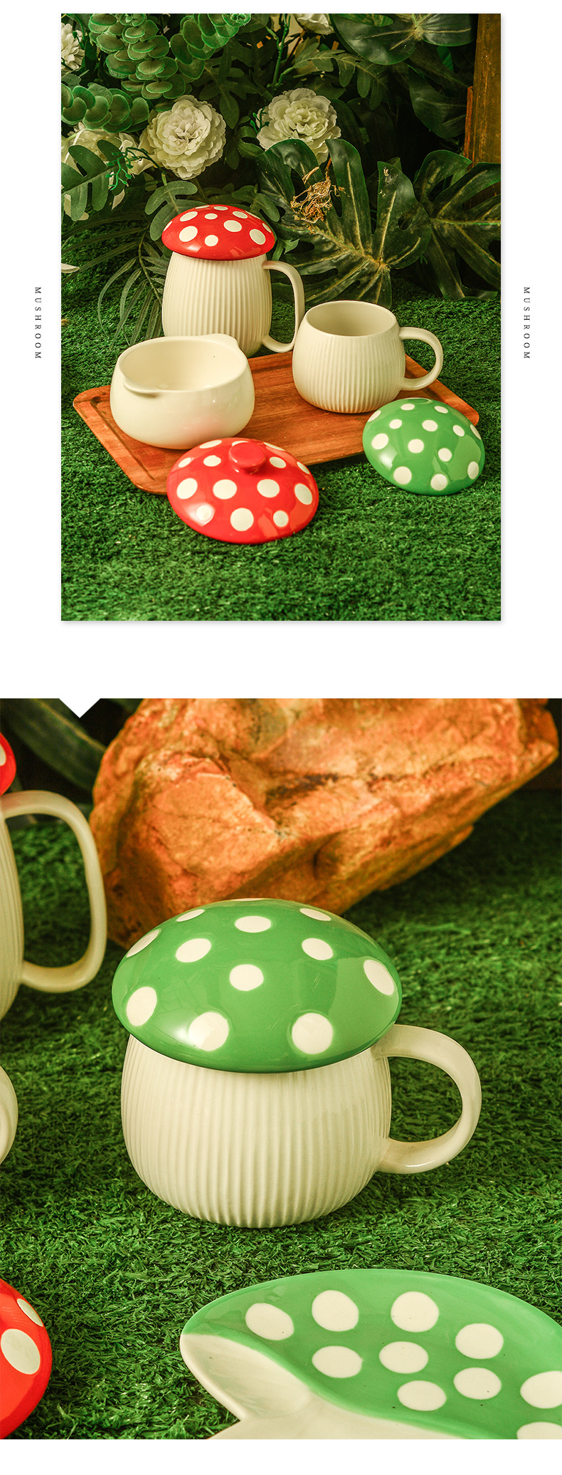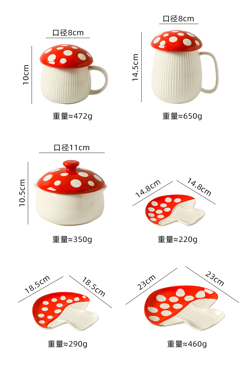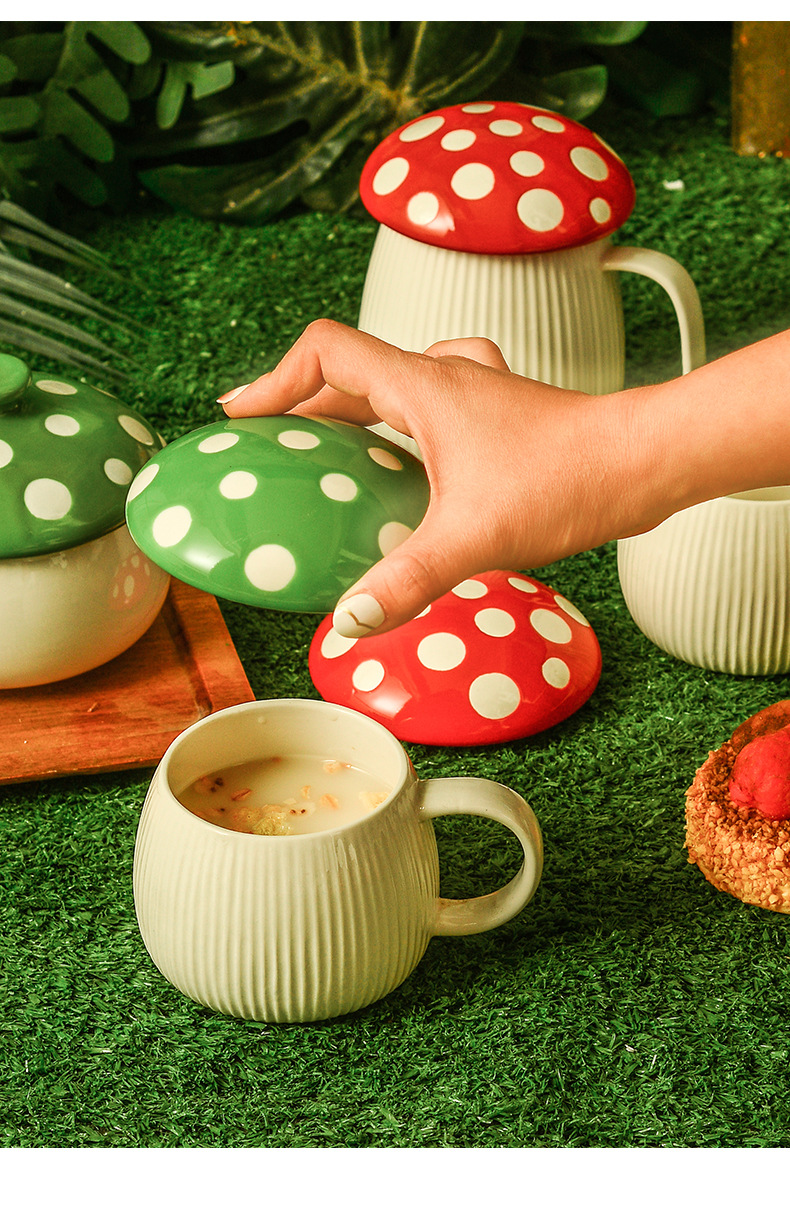 Corazón de una niña taza de hongos rojos cubierta encantadora cubierta de cubierta esmalte de color puede microondas taza de cerámica de alto valor para el hogar