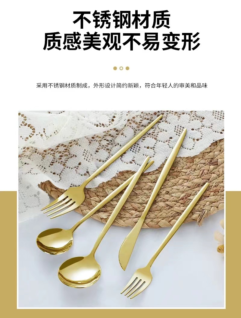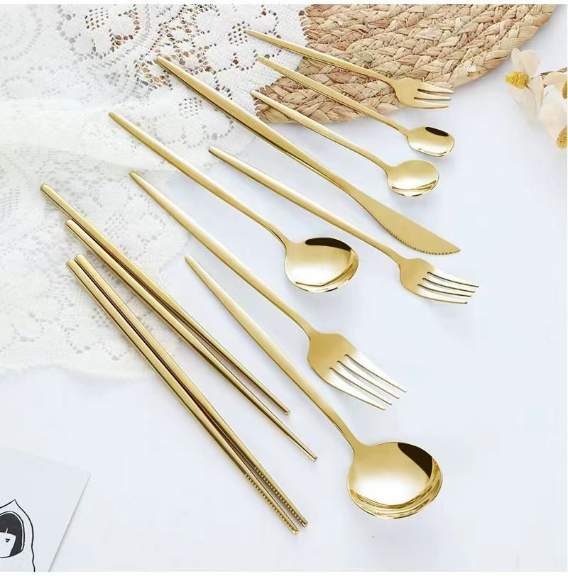 Cuchillos de acero inoxidable al por mayor cucharas portuguesas platos japoneses dorados dulces cucharas horquilla palillos cucharas de nieve cucharas frutas