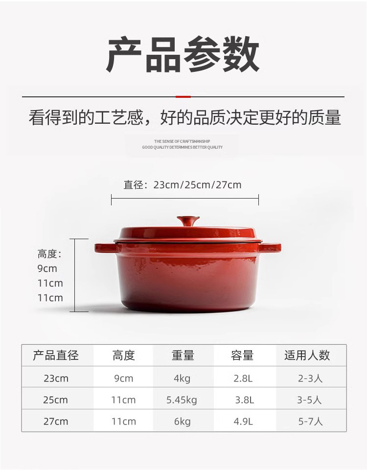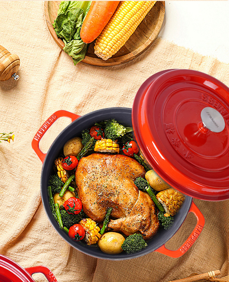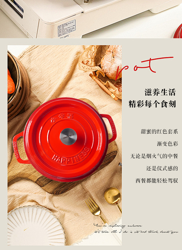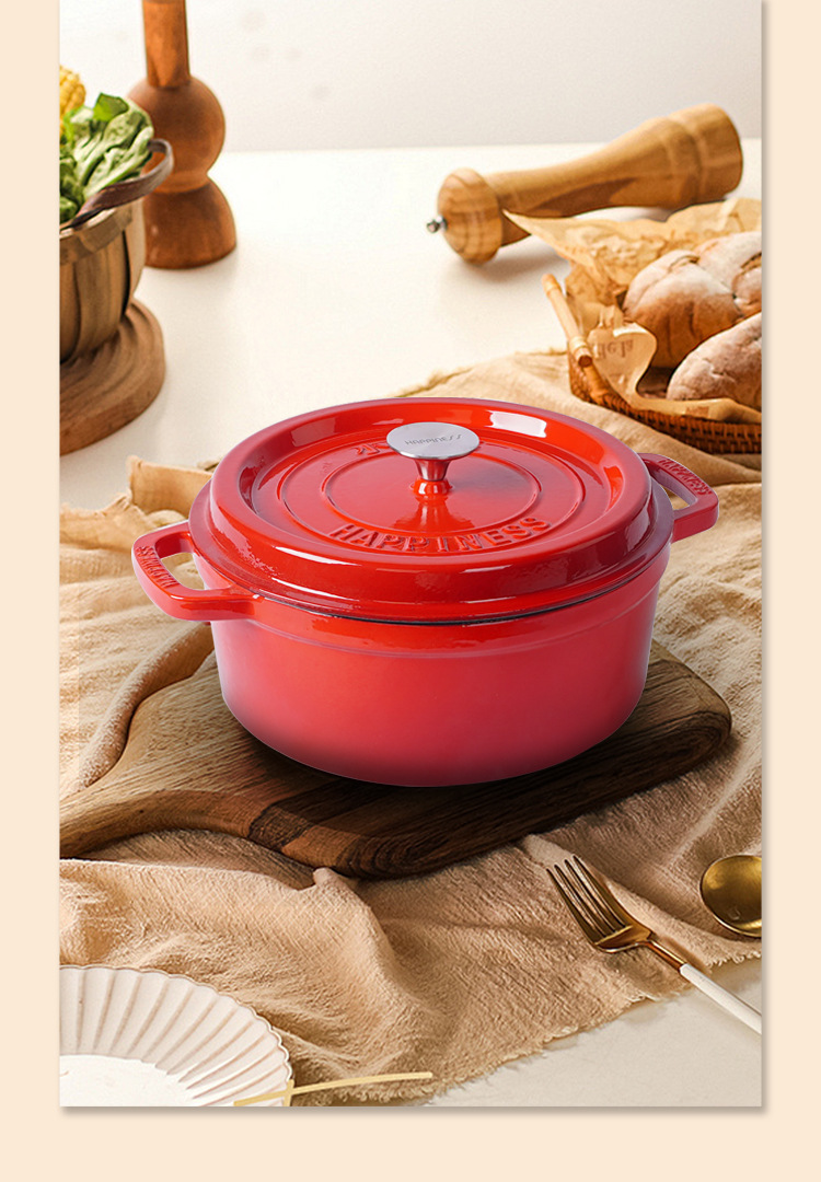 Exportación de calidad 25cm esmalte olla de hierro fundido sopa olla de cerdo olla de esmalte de hierro no recubierto antiadherente olla de hierro olla