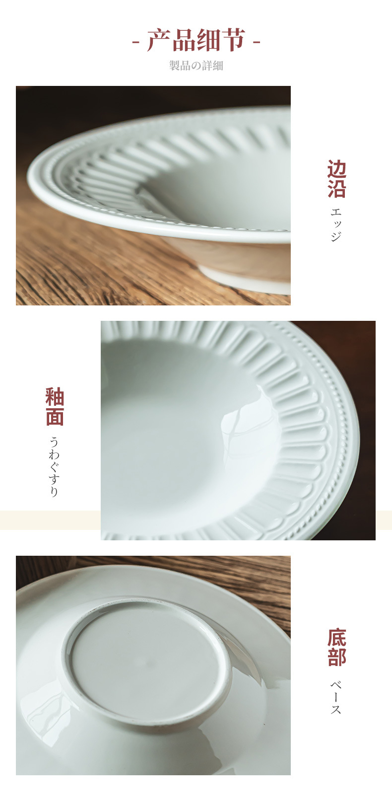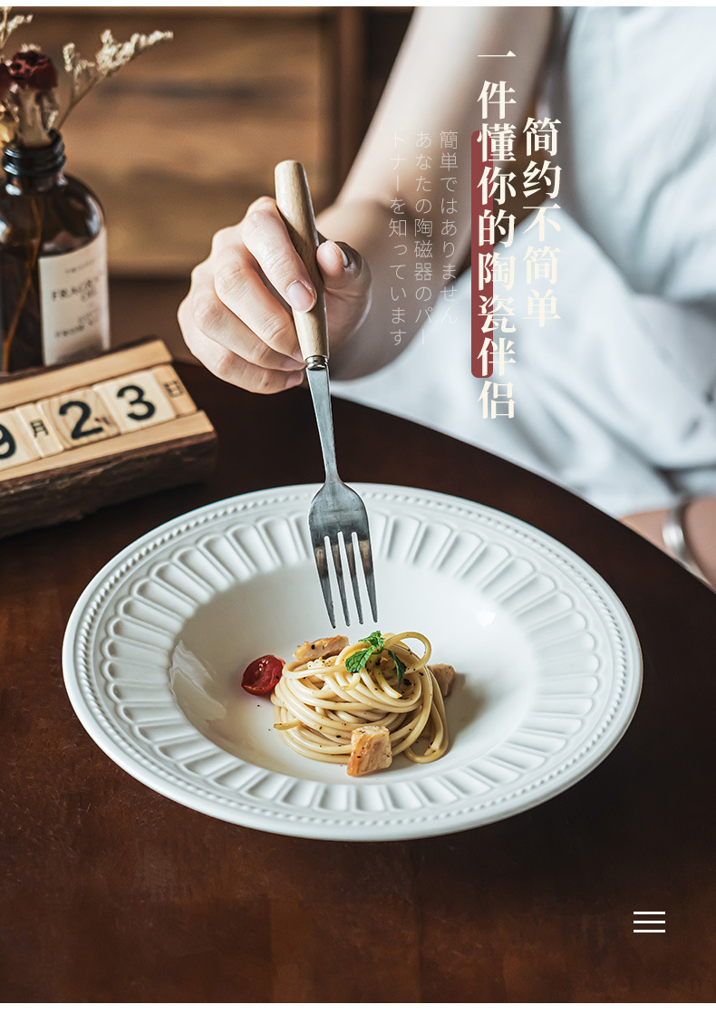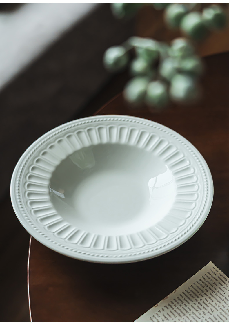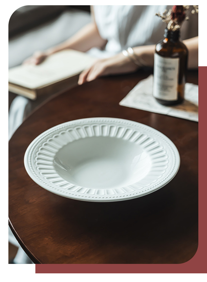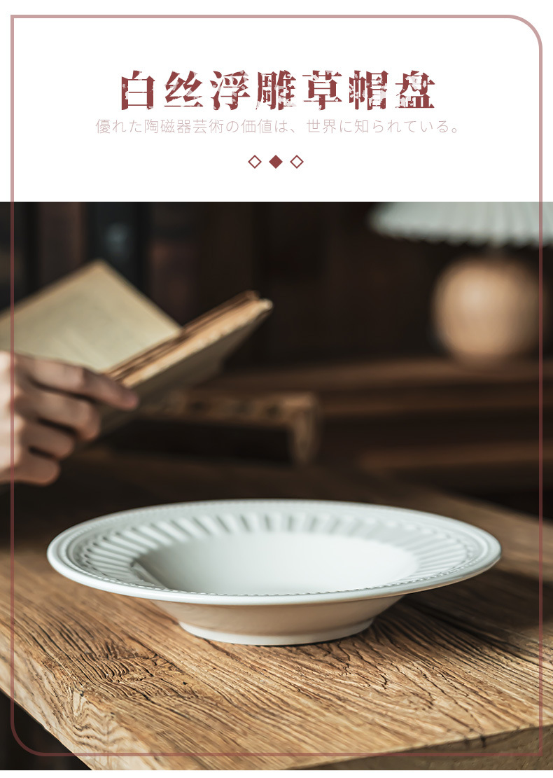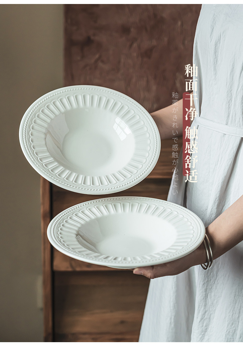 Estilo retro japonés plato redondo alivio creativo ensalada tazón vajilla Placa de alta calidad hogar plato de cerámica plato de sopa