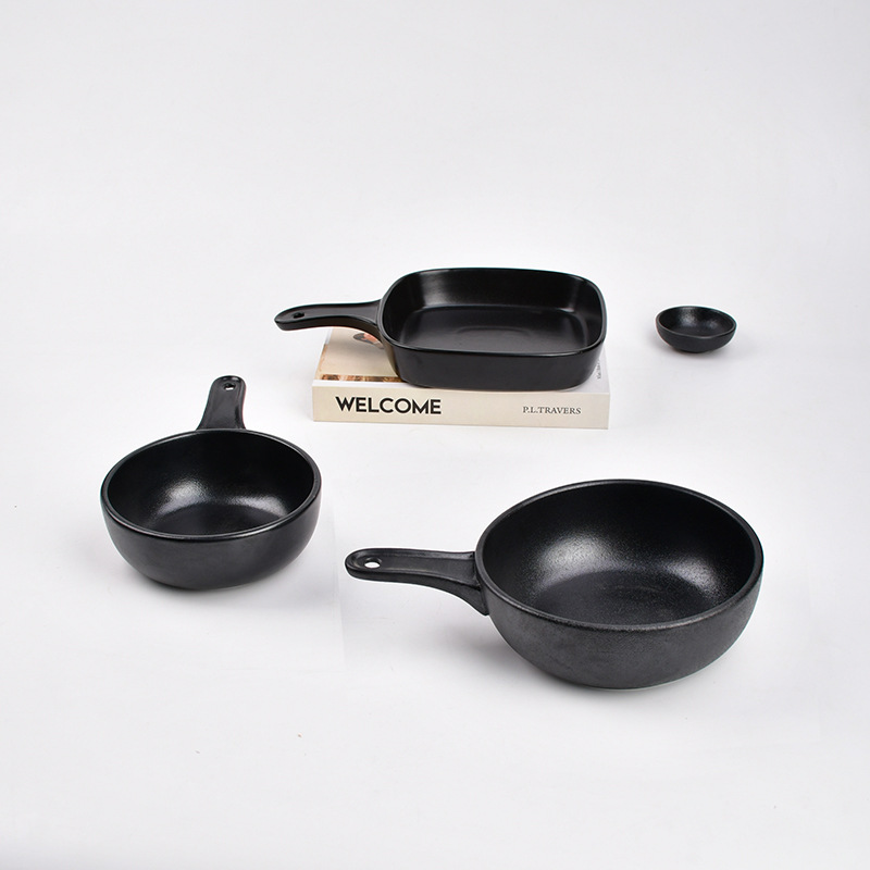 Placa de cerámica japonesa con mango Placa de horneado negro redondeada cuadrada Placa de horneado negro de 6 pulgadas Placa de 7 pulgadas Placa de 8 pulgadas