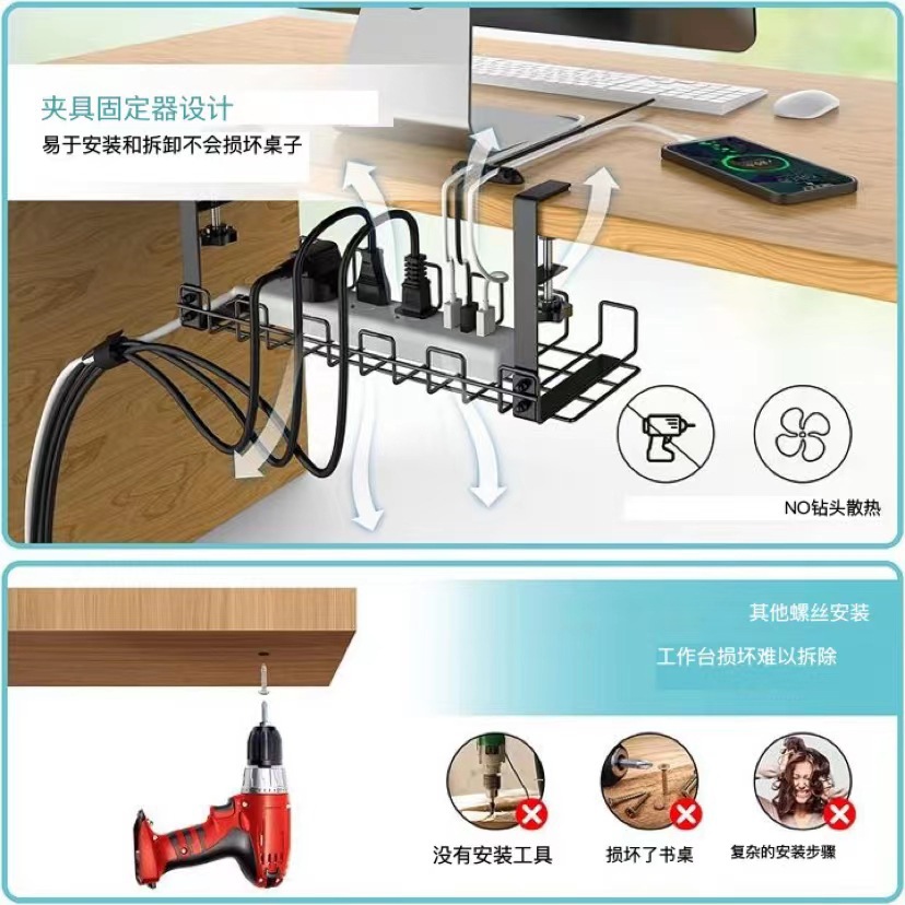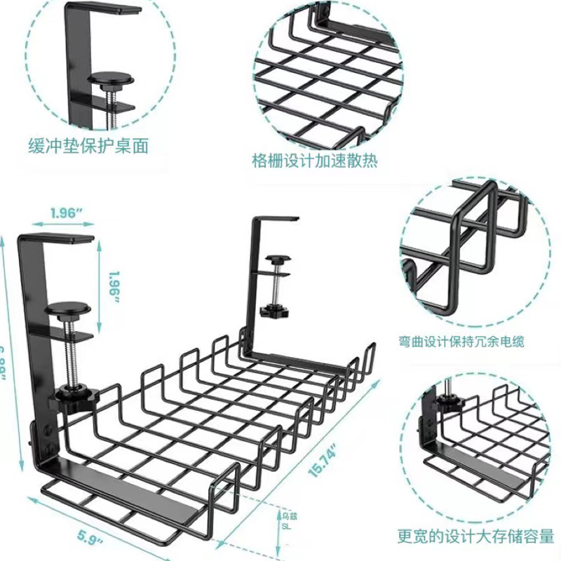 Transfronterizos bajo la mesa de fijación de cables marco de almacenamiento de cables de fila de inserción colgante cesta de fijación de cables ranura de tabla de salida inferior sin perforación marco de fijación