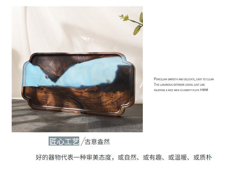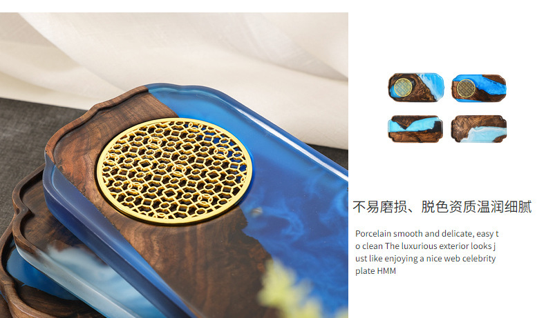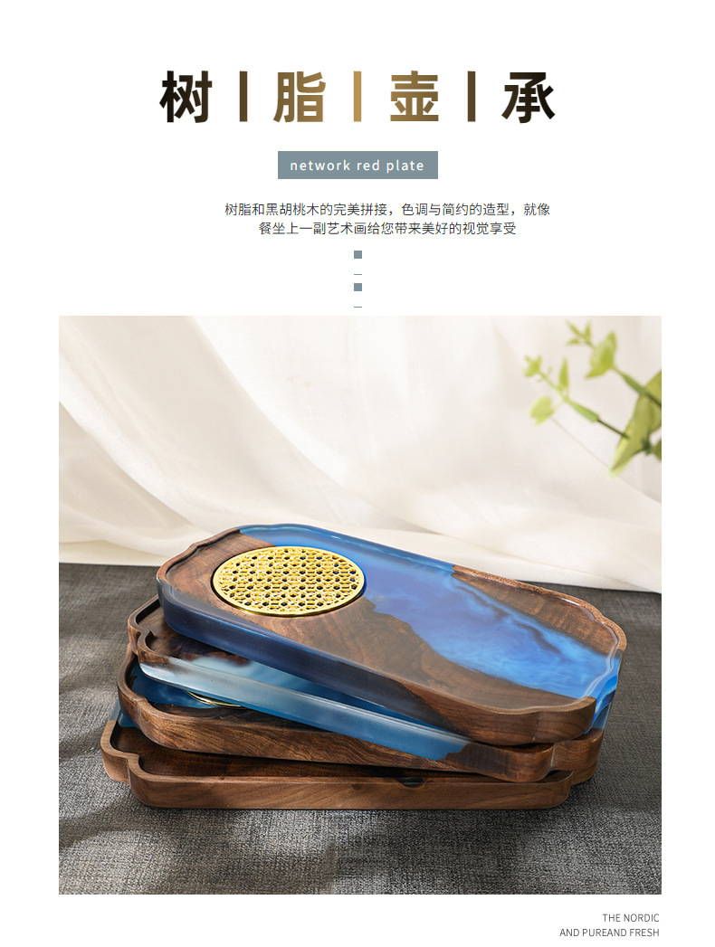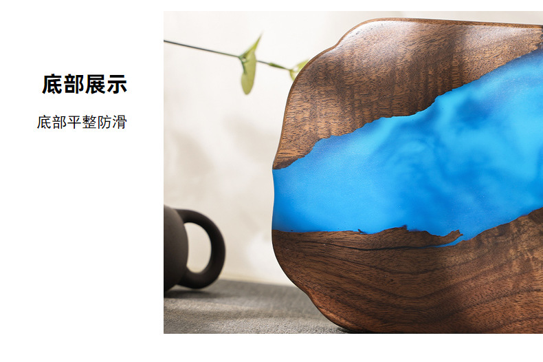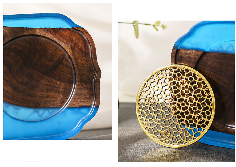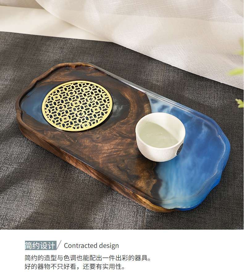 Nuevo chino epoxi resina seca burbuja Mesa negro nogal luz lujo hogar juego de té bandeja olla portavasos fruta bandeja
