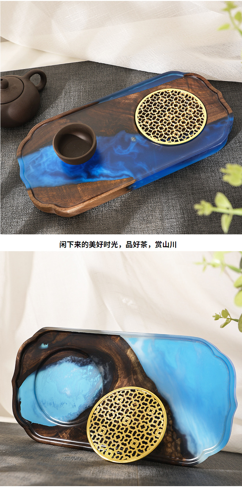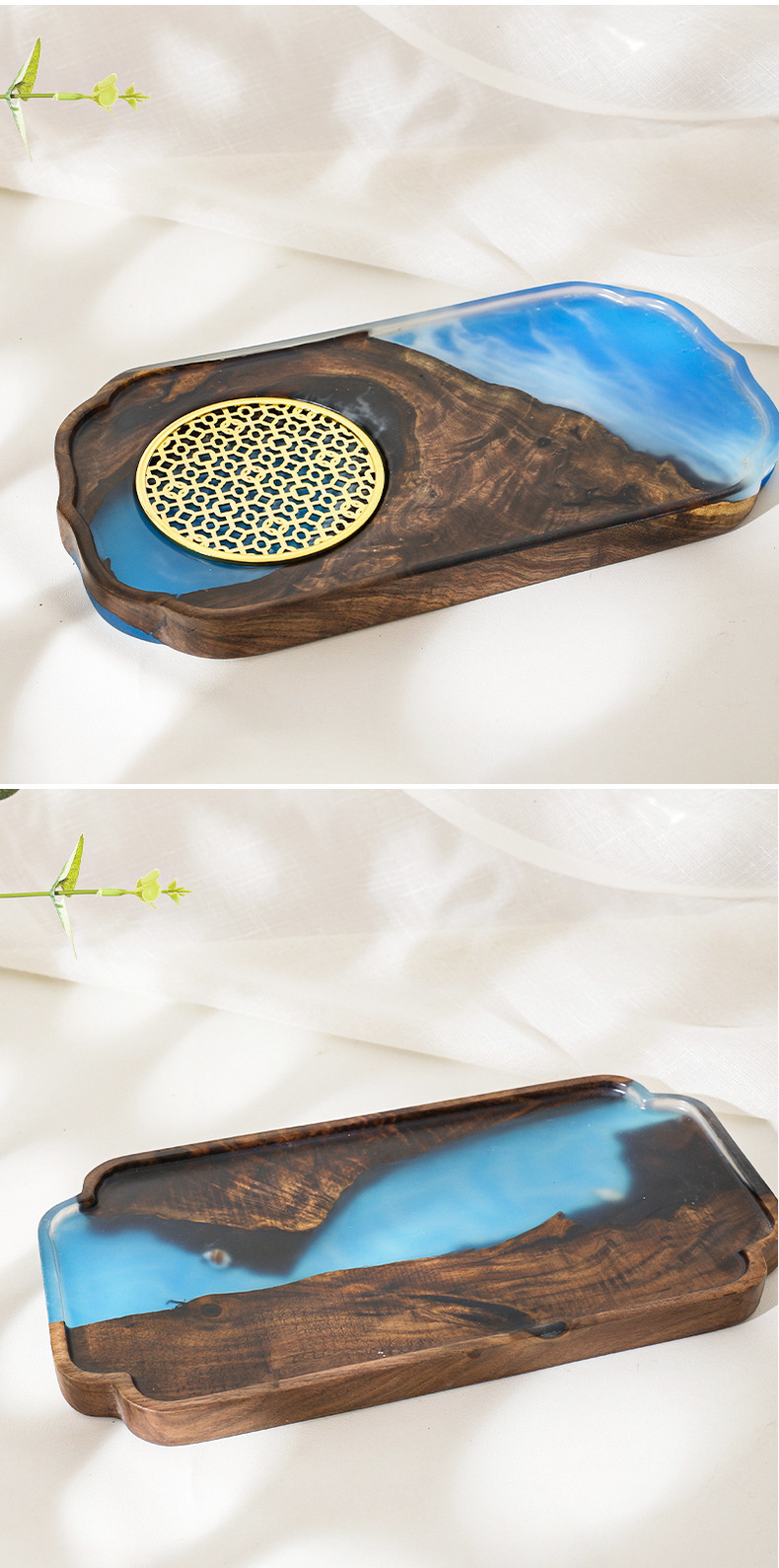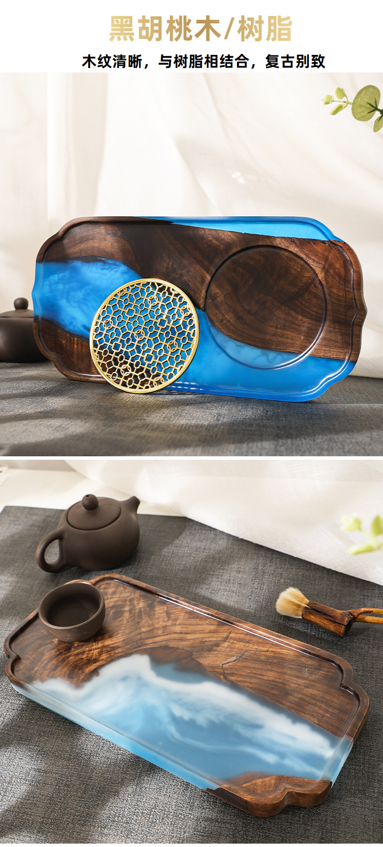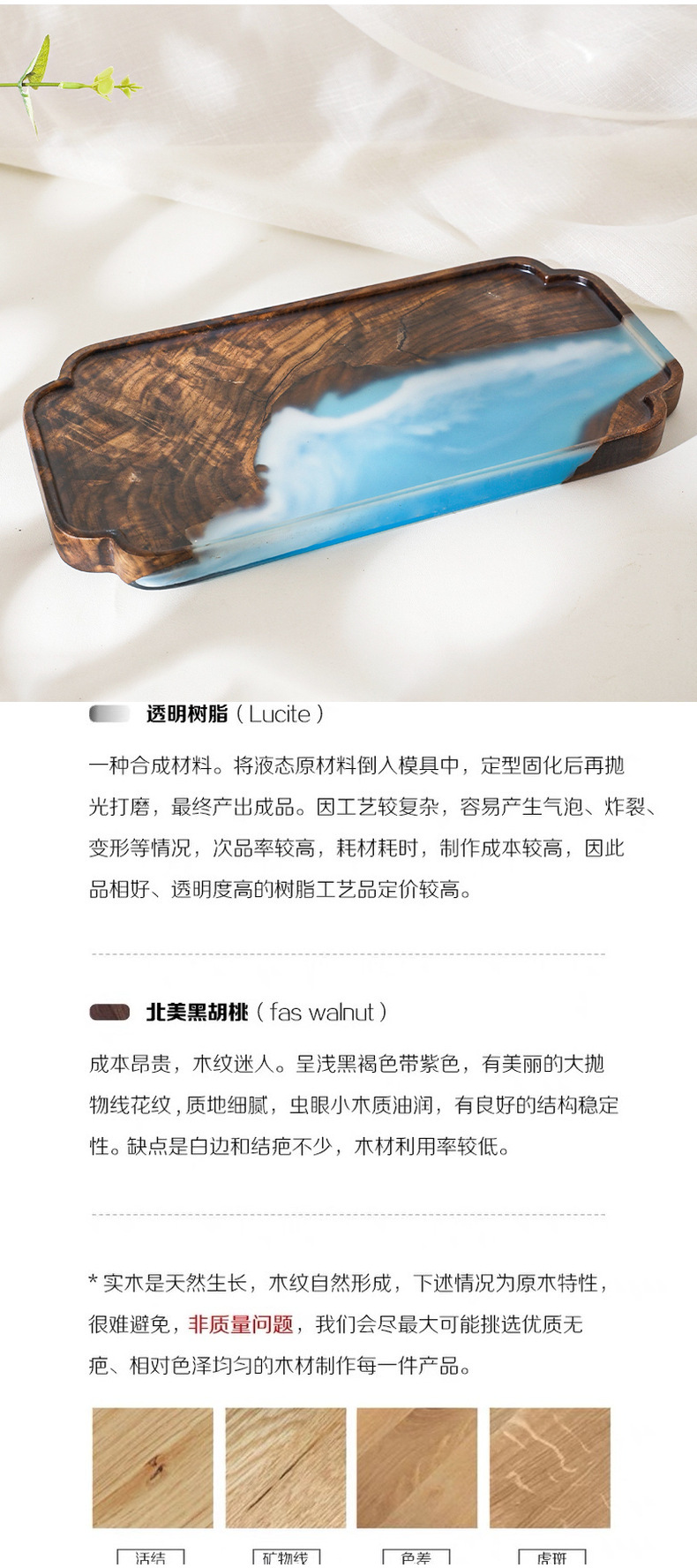 | Color | Resina de nogal negro pequeña mesa de burbujas secas,Placa de nube de resina de nogal negro |