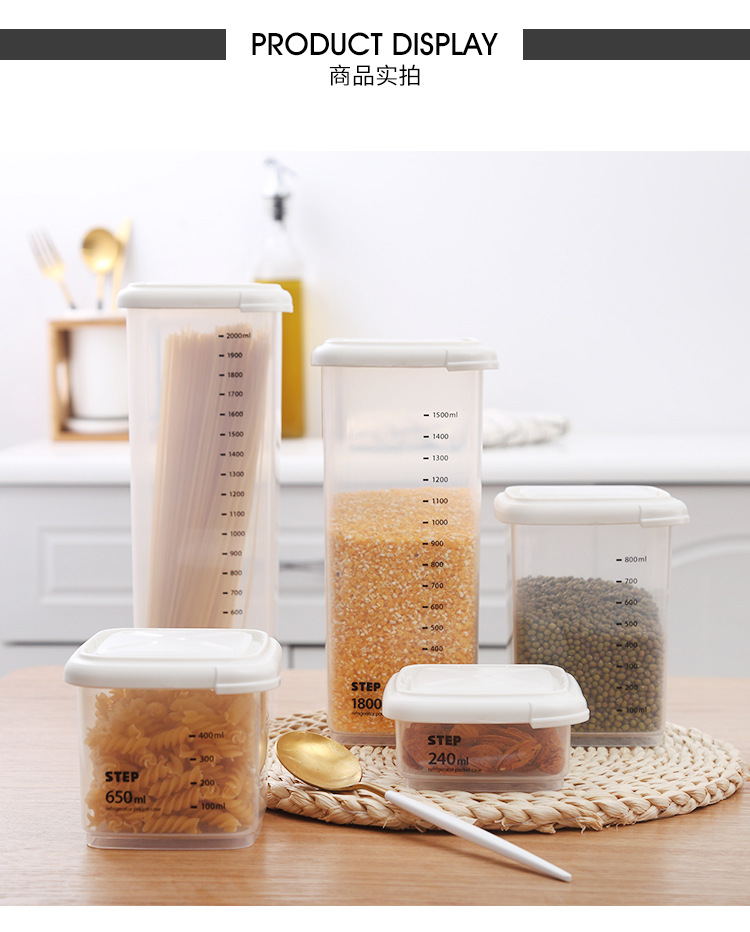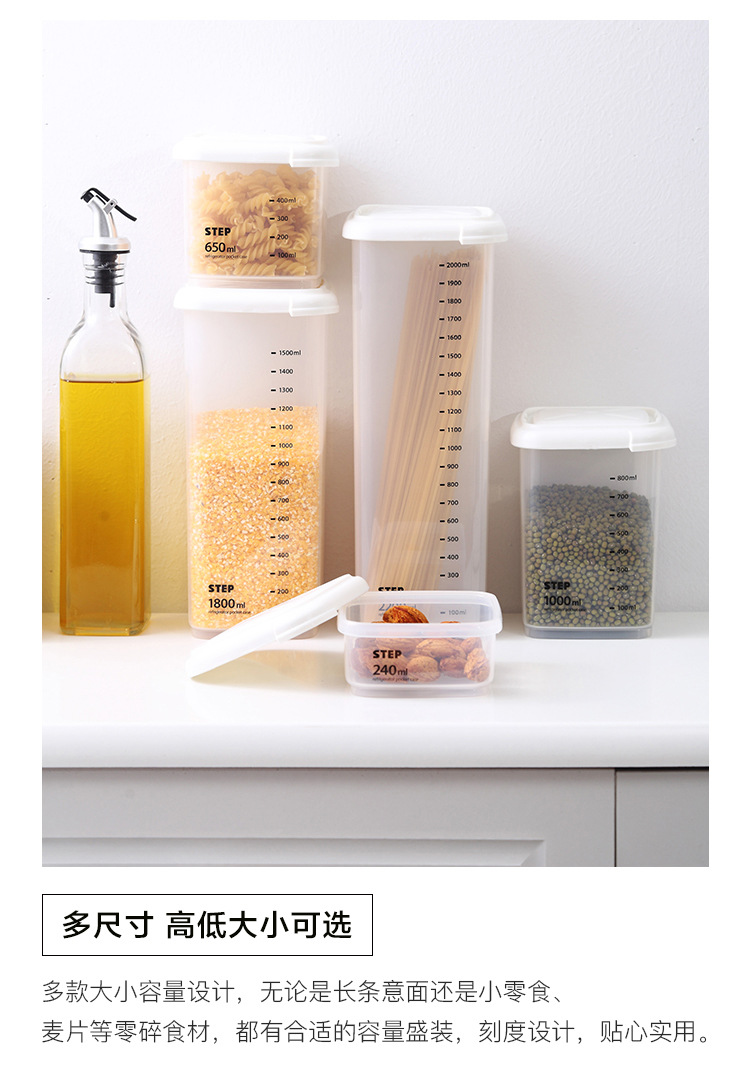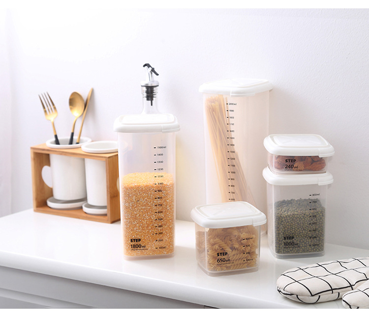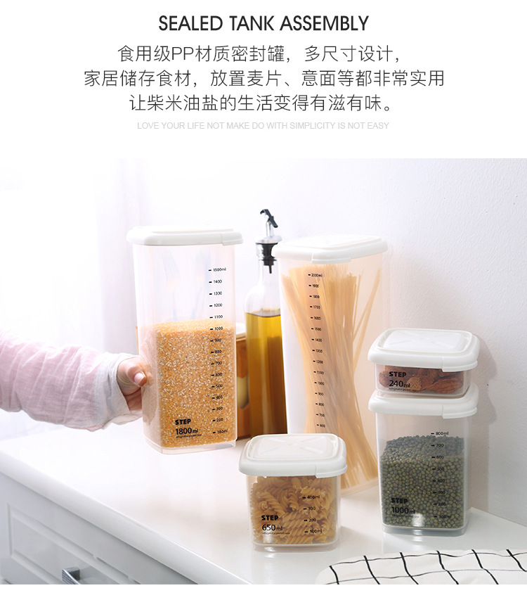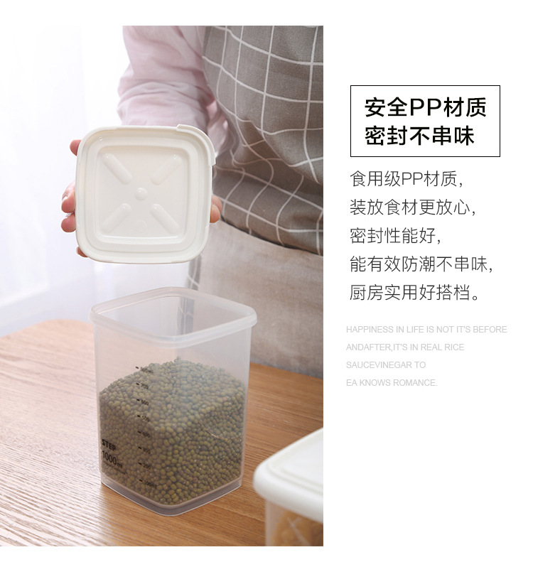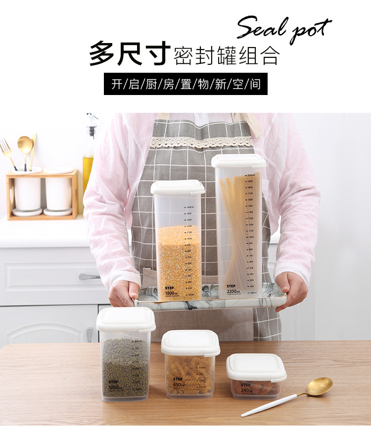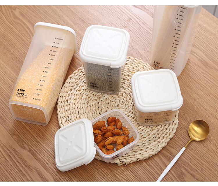 La cocina importada de Corea de Corea a prueba de humedad, caja de almacenamiento de alimentos de plástico, granos, frutas secas, galletas, tanques de almacenamiento.