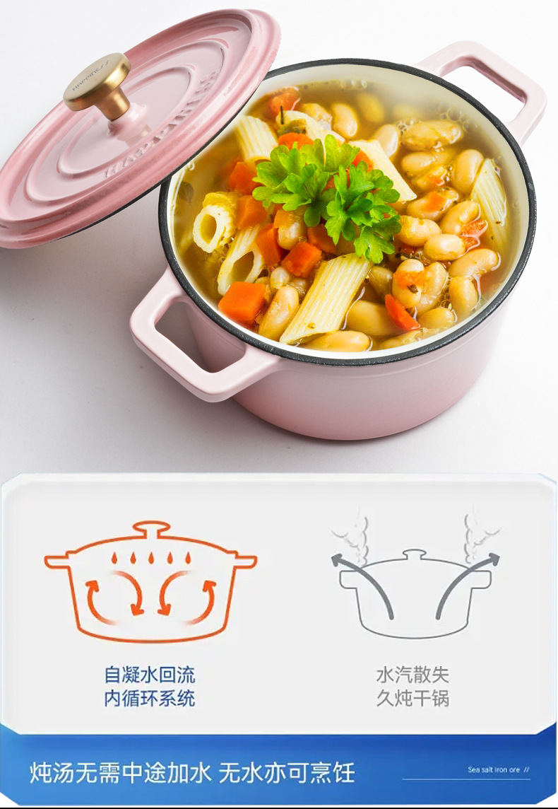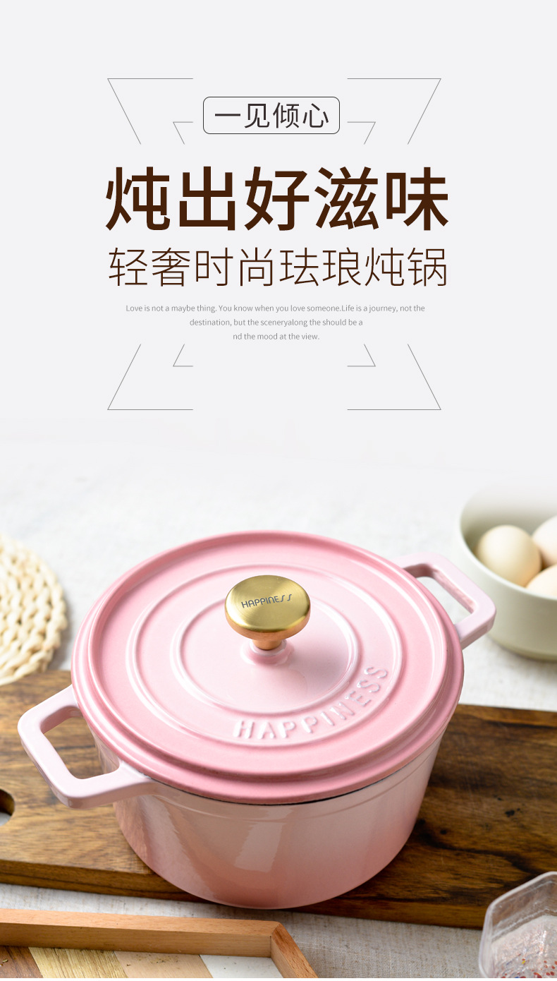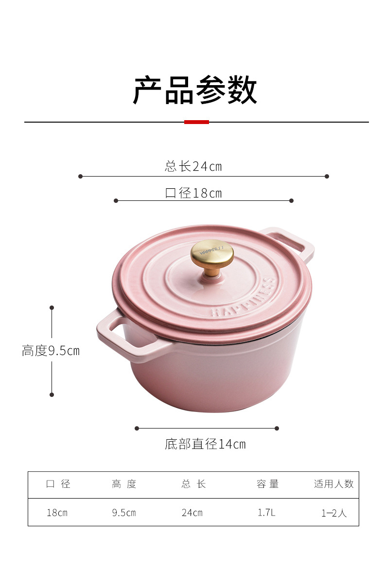 Pequeña felicidad de hierro fundido olla de esmalte 18cm esmalte olla hogar cazuela olla inducción olla de sopa