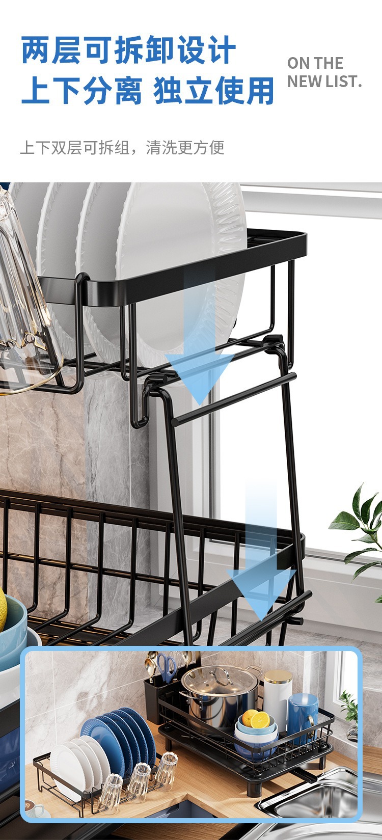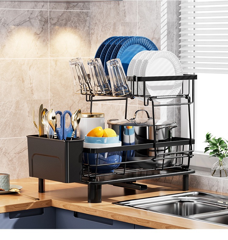 Cocina de drenaje de platos estante de almacenamiento de objetos utensilios domésticos palillos cuchillos y tenedores estante de almacenamiento de tazas estante de platos de secado de mesa estante de drenaje de agua