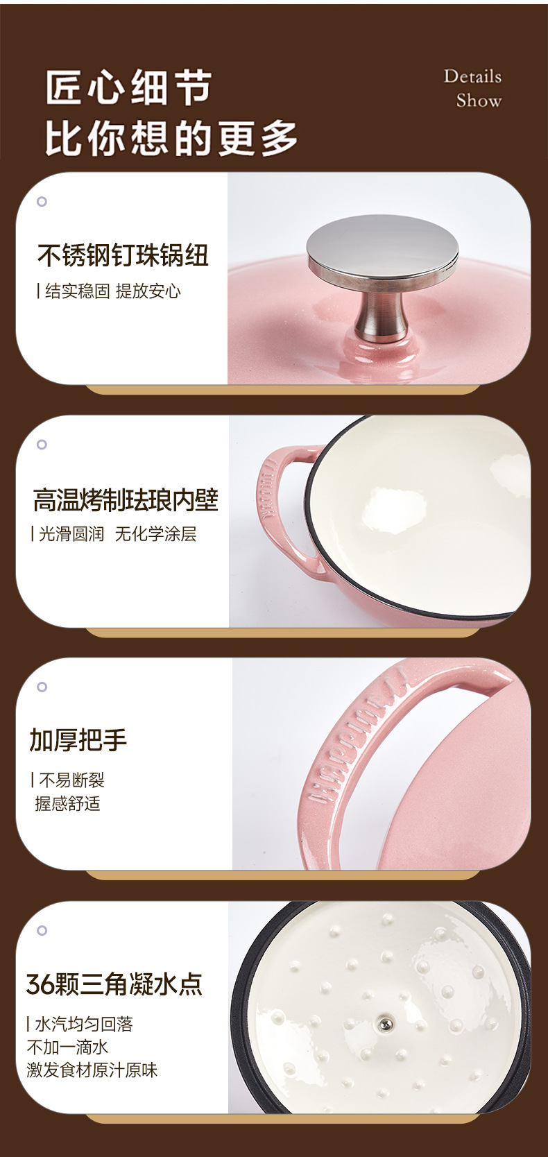 Little Happiness 21cm Court pot esmalte olla de hierro fundido olla de sopa olla de esmalte olla de arroz multifuncional olla de estofado doméstica