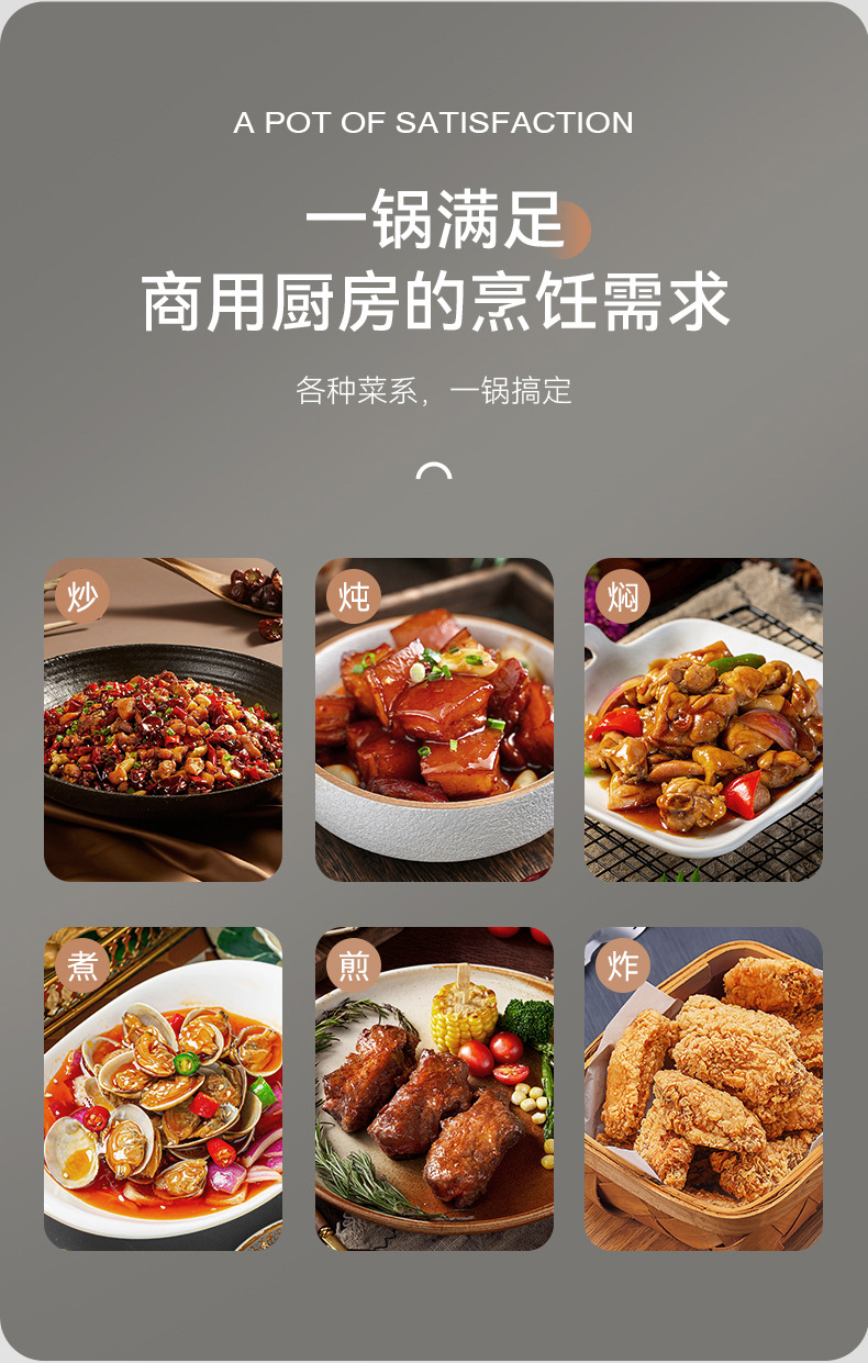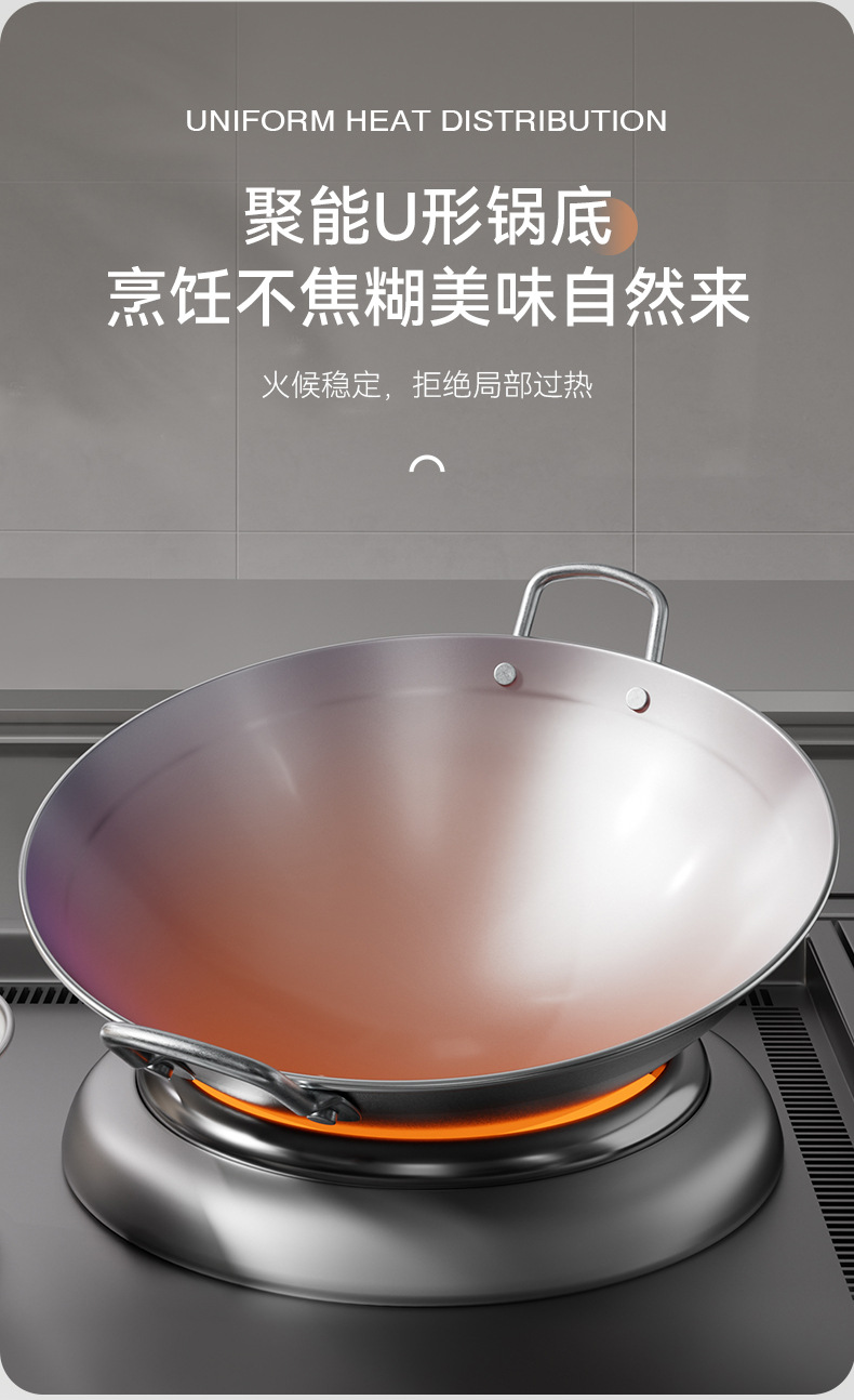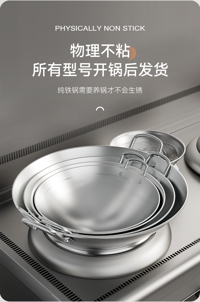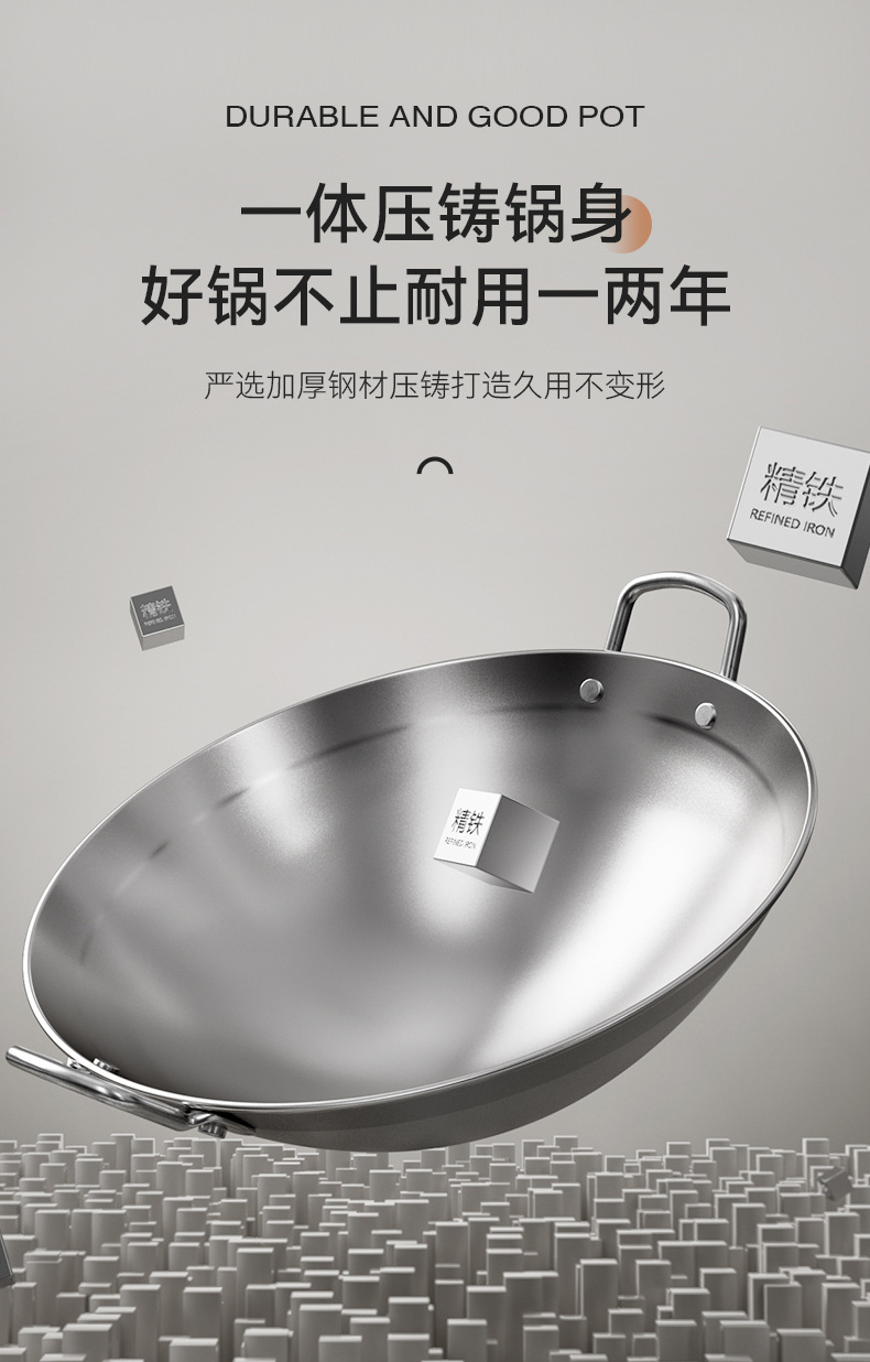 Nuevo tipo de olla cóncava comercial de hierro de doble oreja olla de frita de platos de hierro de fondo redondo de punta de hotel al por mayor fábrica de olla