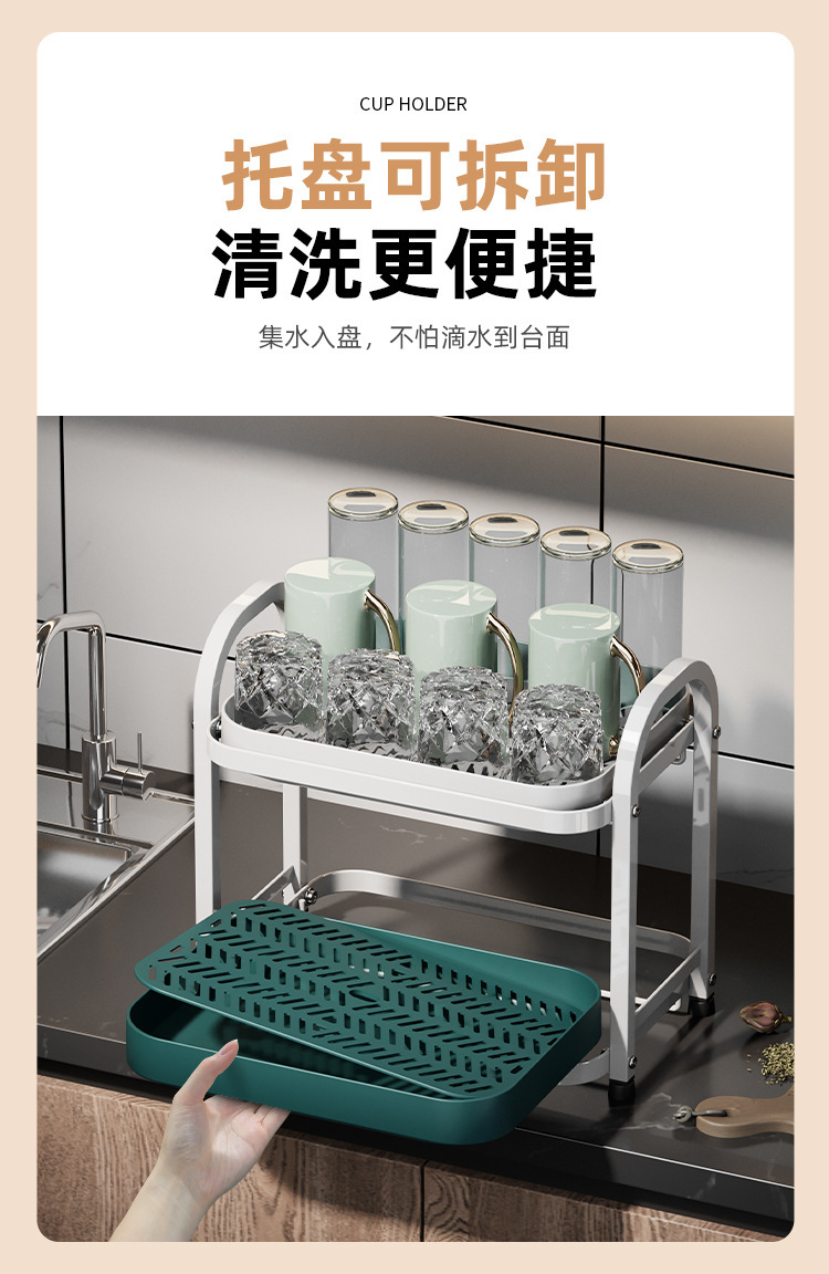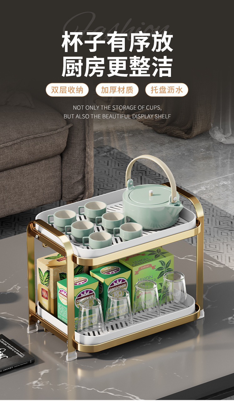 Cocina transfronteriza drenaje de tazas de mesa sala de estar almacenamiento de té bandeja de tazas de vino multifuncional rack fabricantes al por mayor