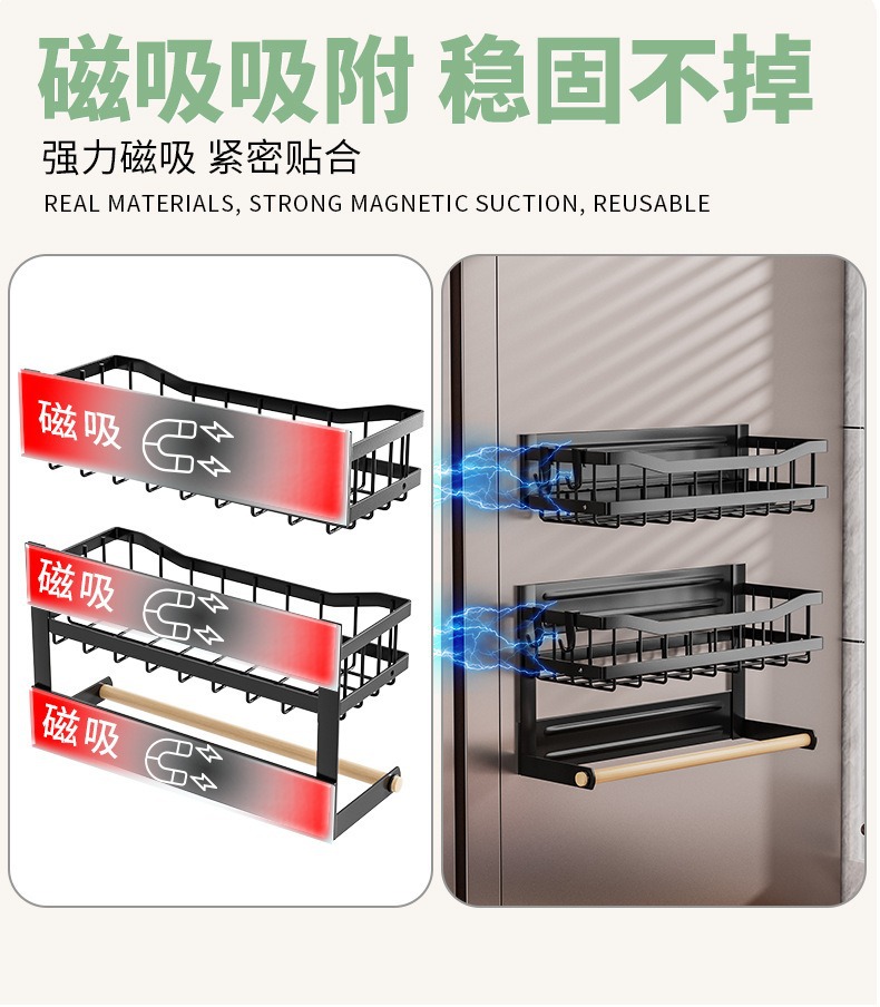 Estante de almacenamiento lateral plegable para refrigerador de absorción magnética de cocina estante de almacenamiento sin perforación estante de condimento multifuncional