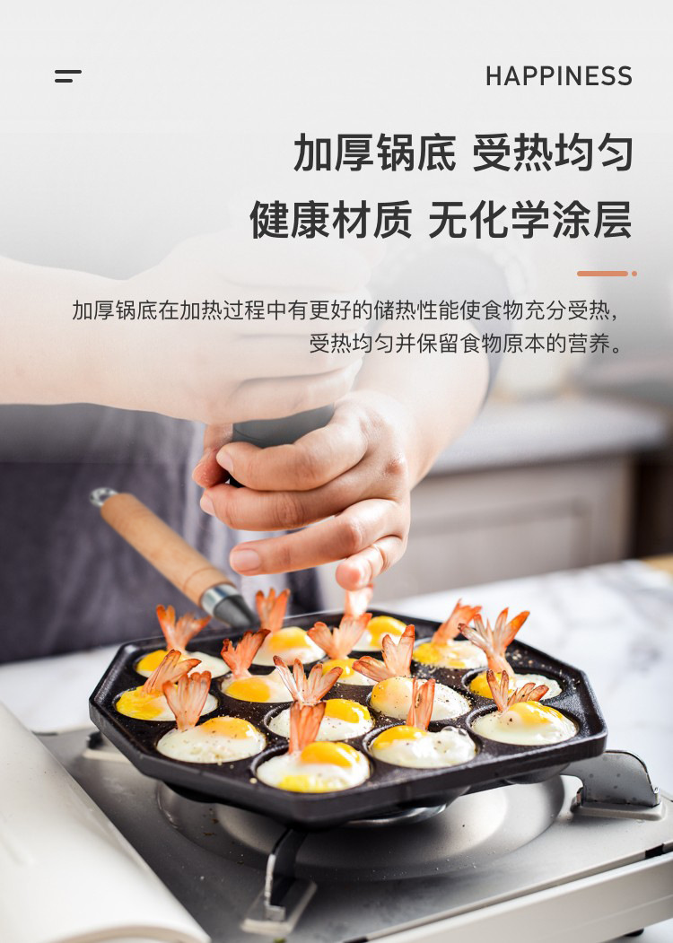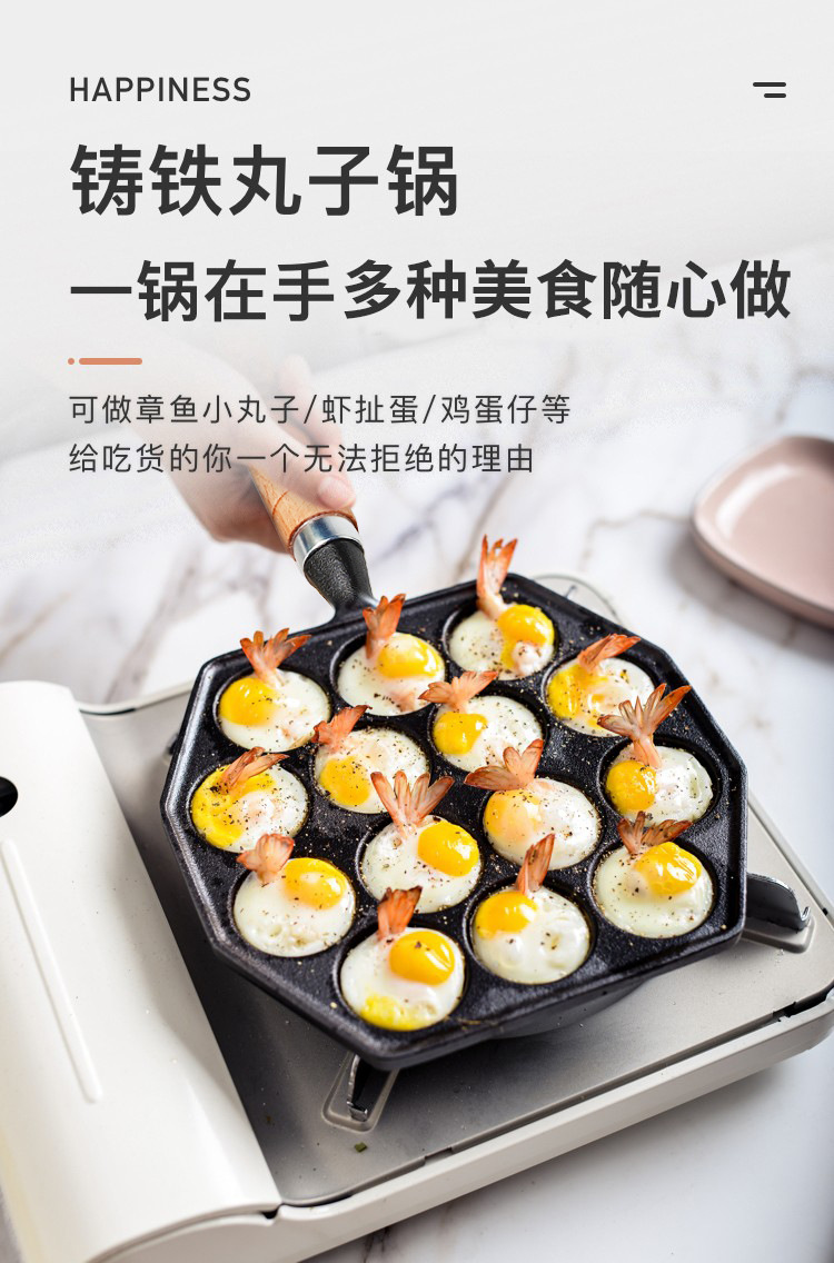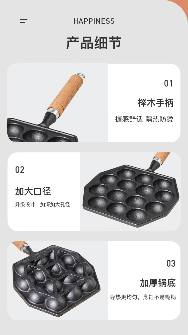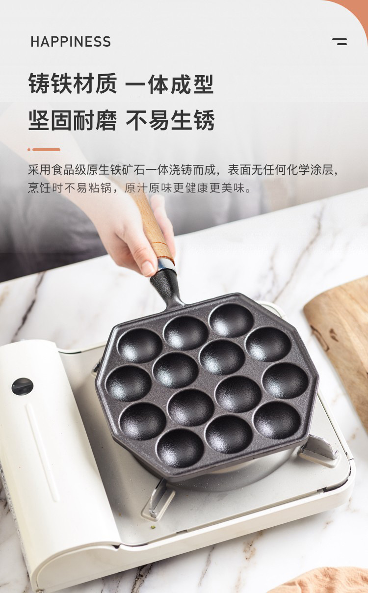Bolas de pulpo Máquina de hierro fundido hogar no recubierto antiadherente tortilla pan de codorniz huevo quema molde de camarones para hornear pan herramienta