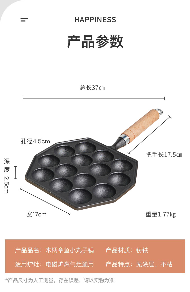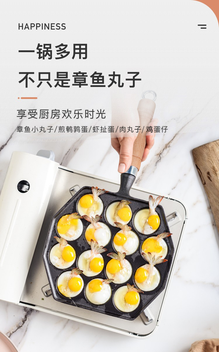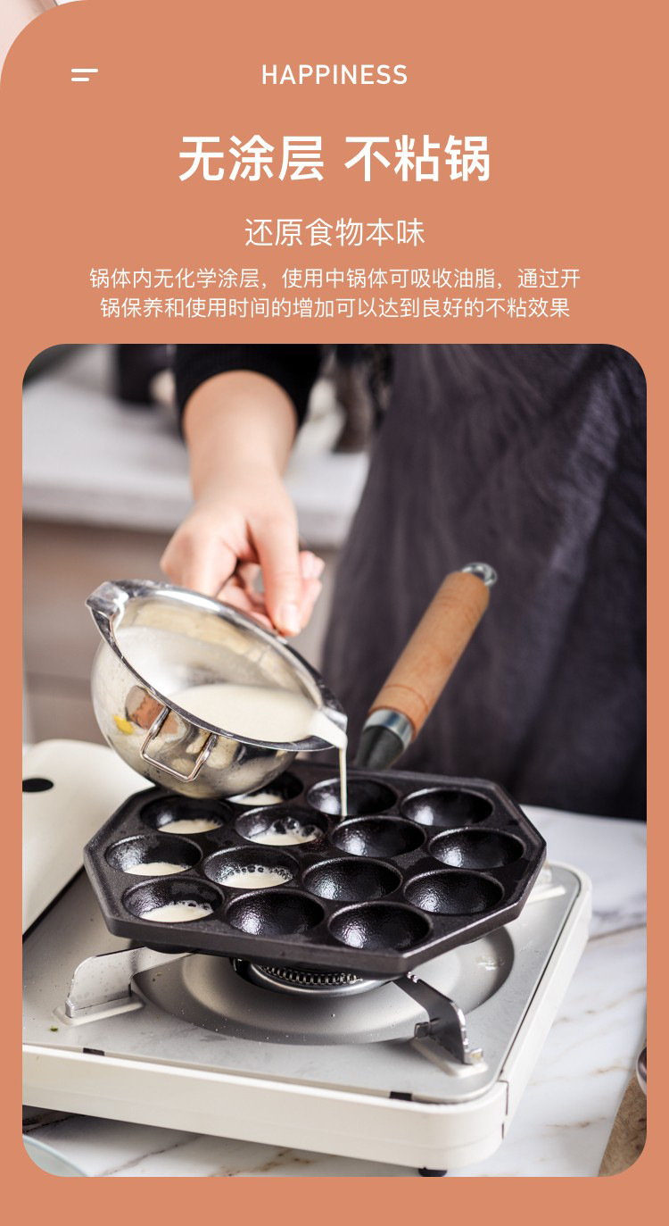 Bolas de pulpo Máquina de hierro fundido hogar no recubierto antiadherente tortilla pan de codorniz huevo quema molde de camarones para hornear pan herramienta