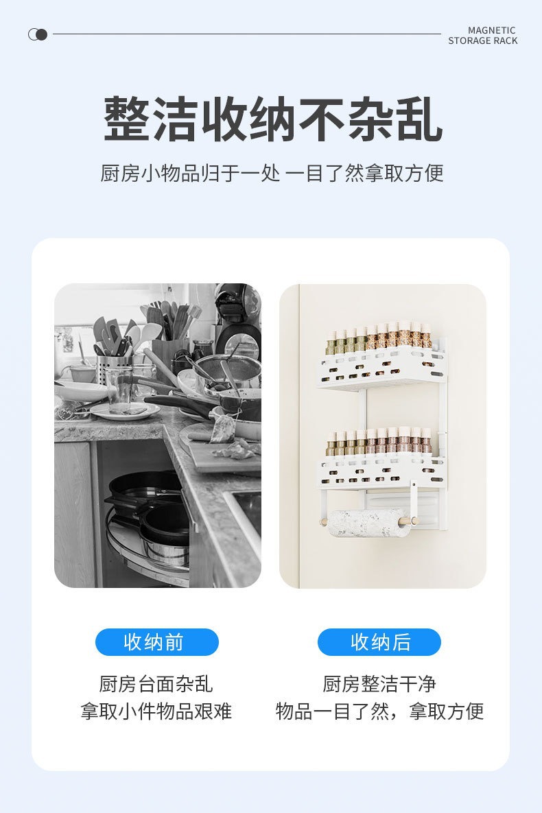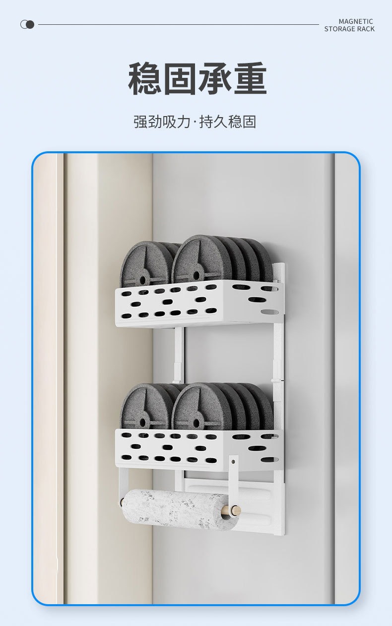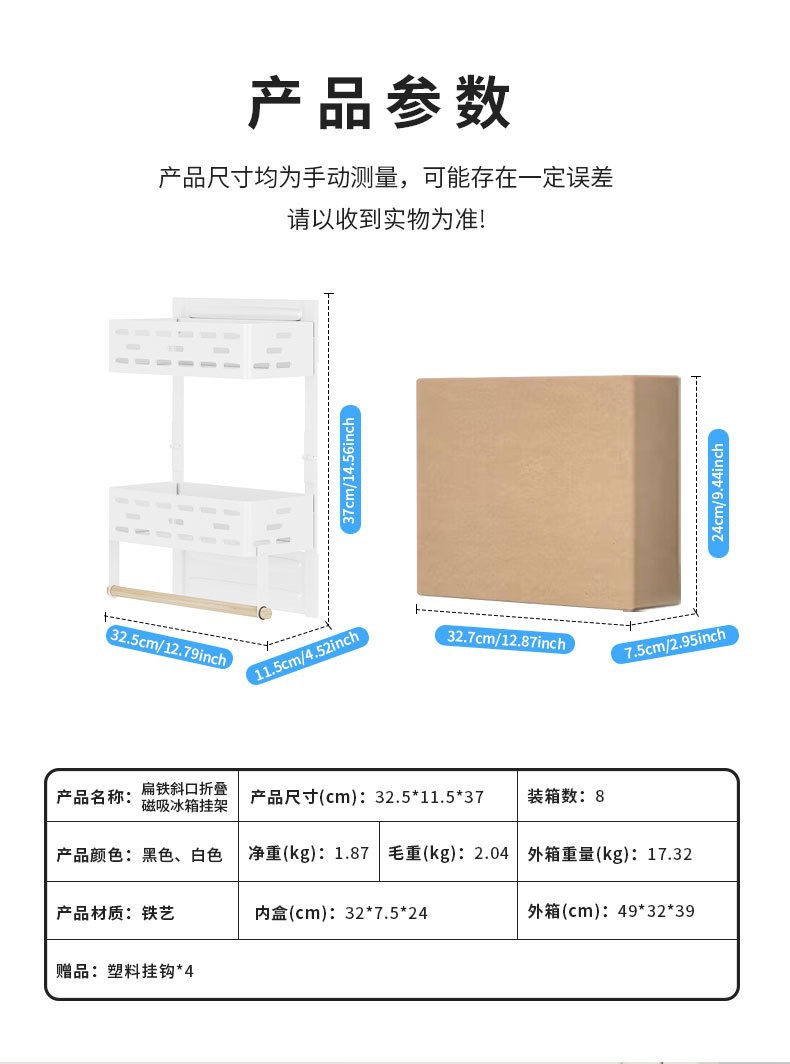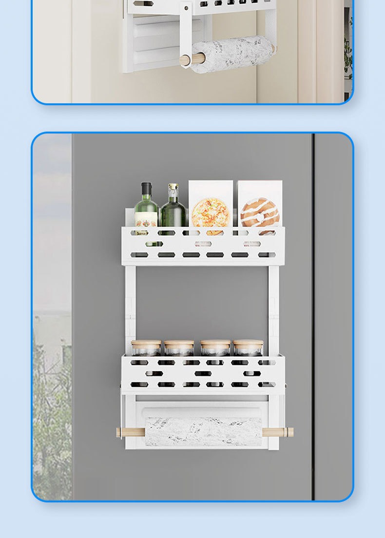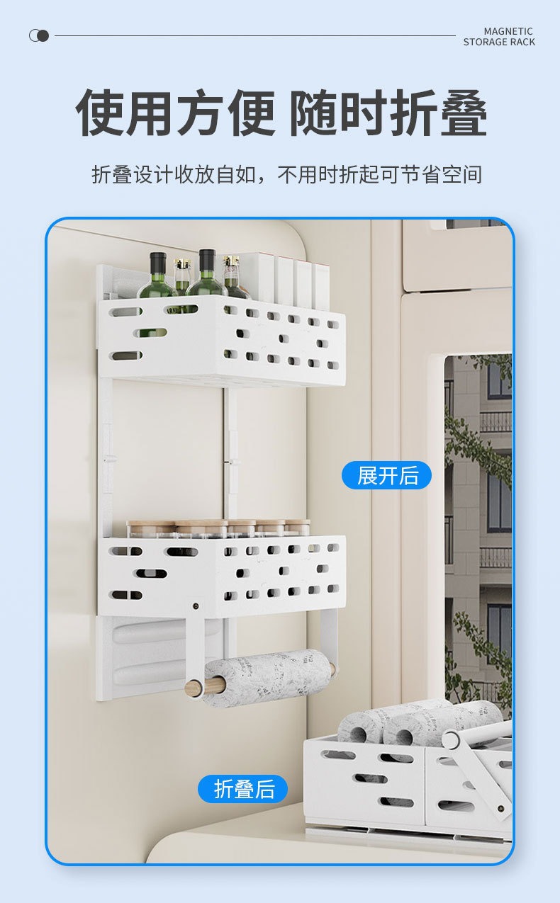 Rack de absorción magnética de cocina plegable refrigerador puerta lateral rack de artículos sin perforación rack de condimento colgante de pared percha de película de preservación