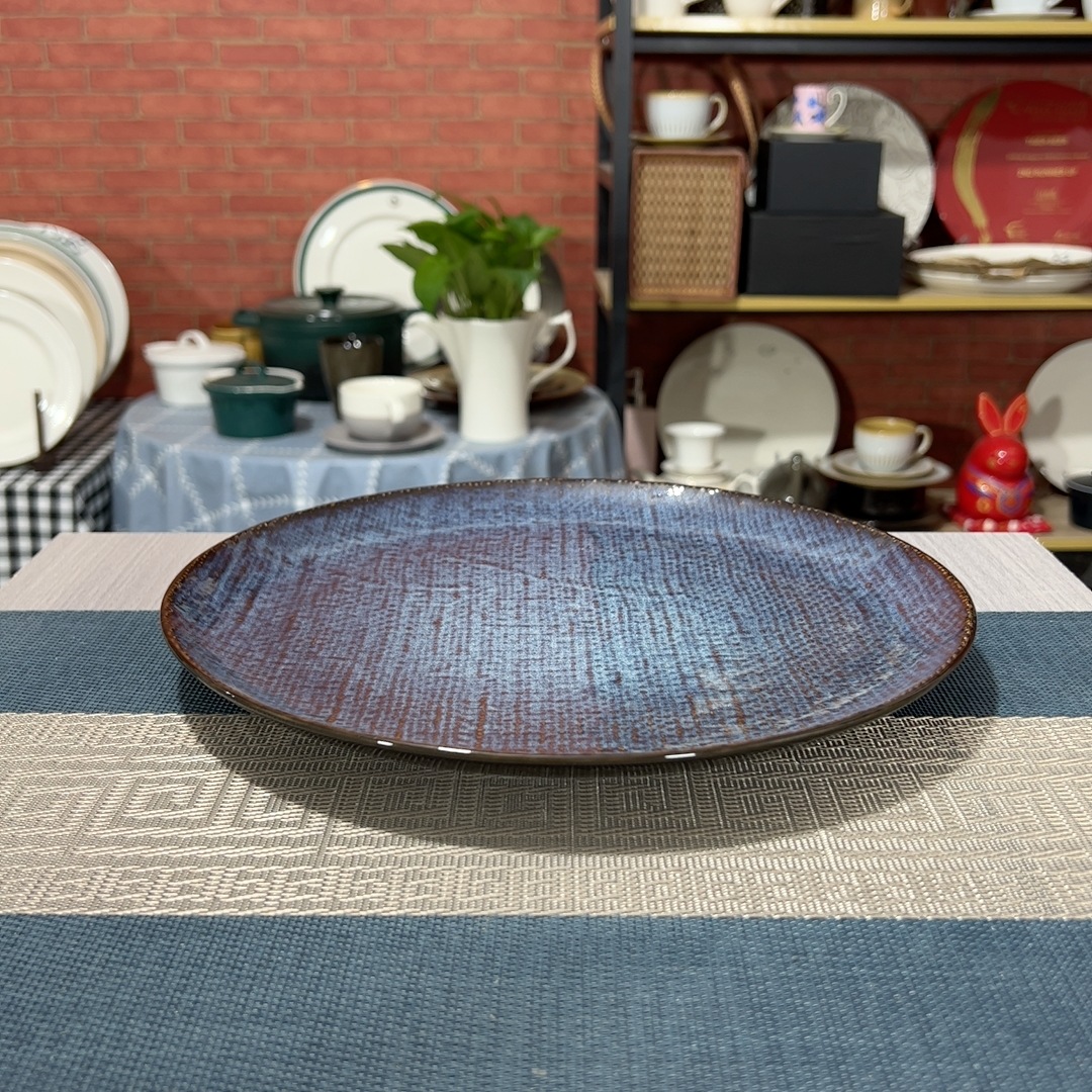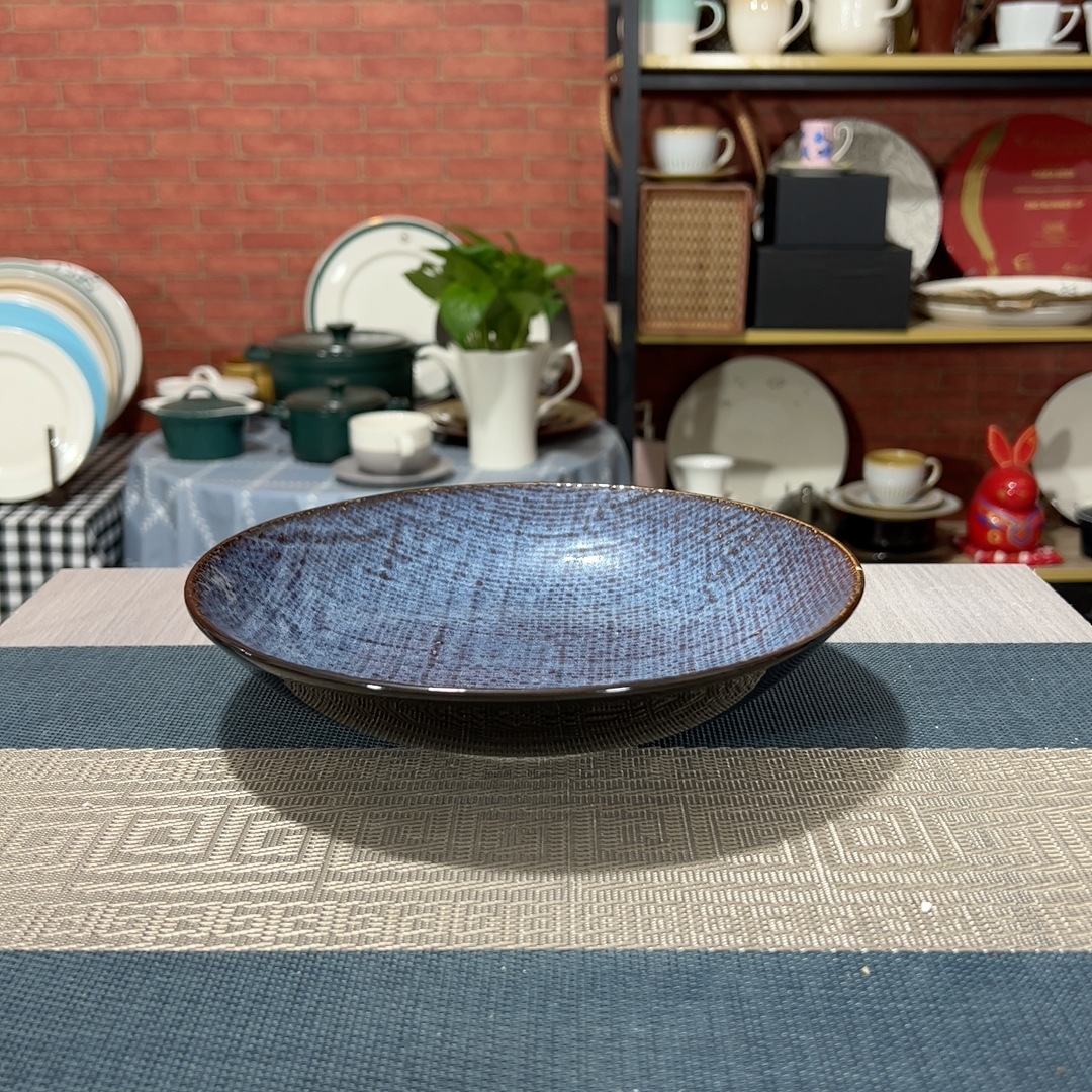 LZ Denim azul patrón de lino plato plano tazón de fideos tazón de sopa tazón de arroz taza de café taza platillo en forma de huevo plato de pescado placa rectangular