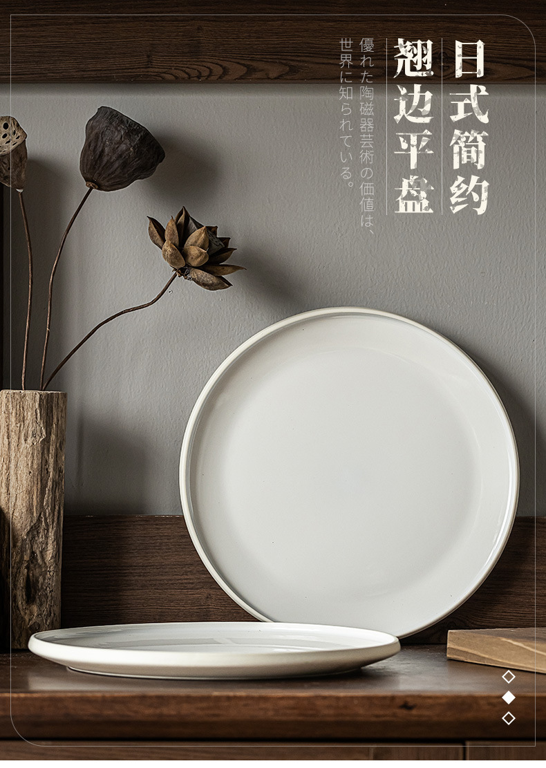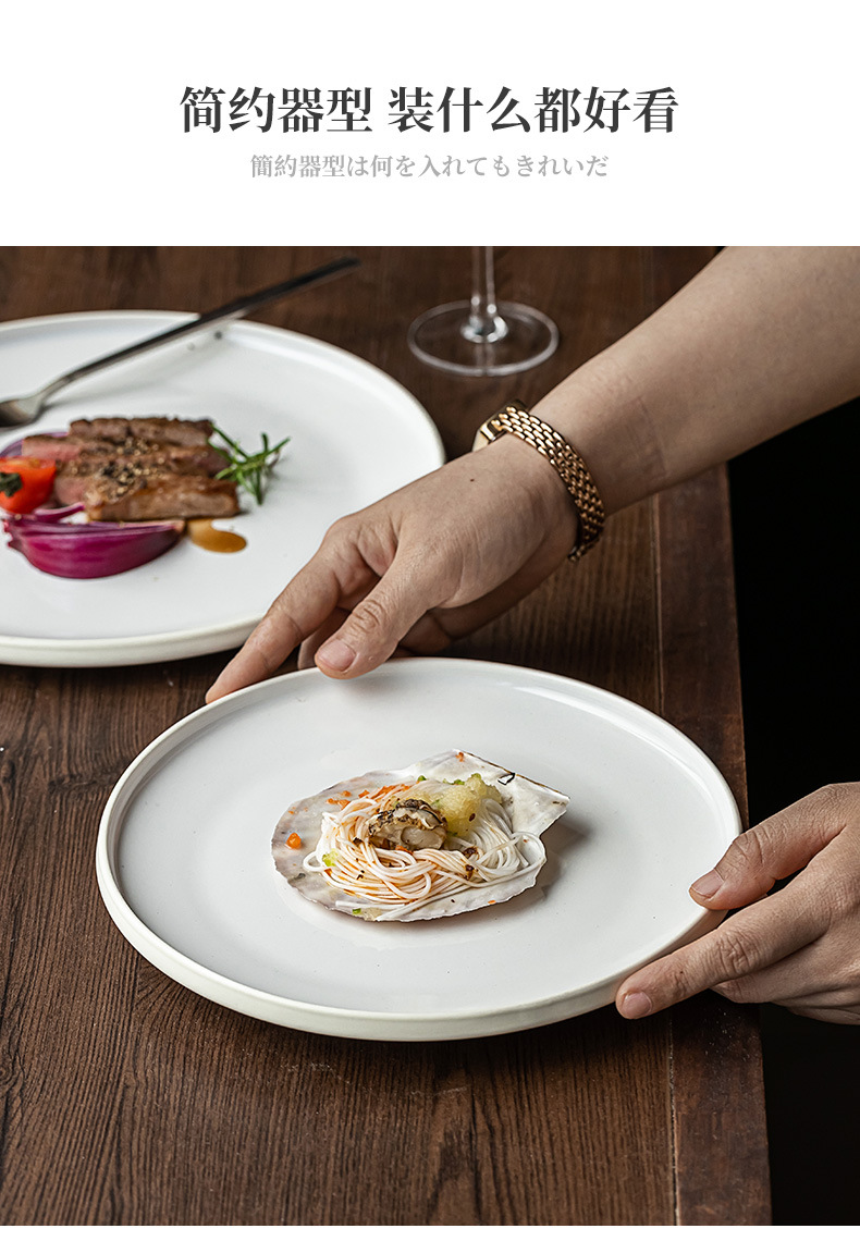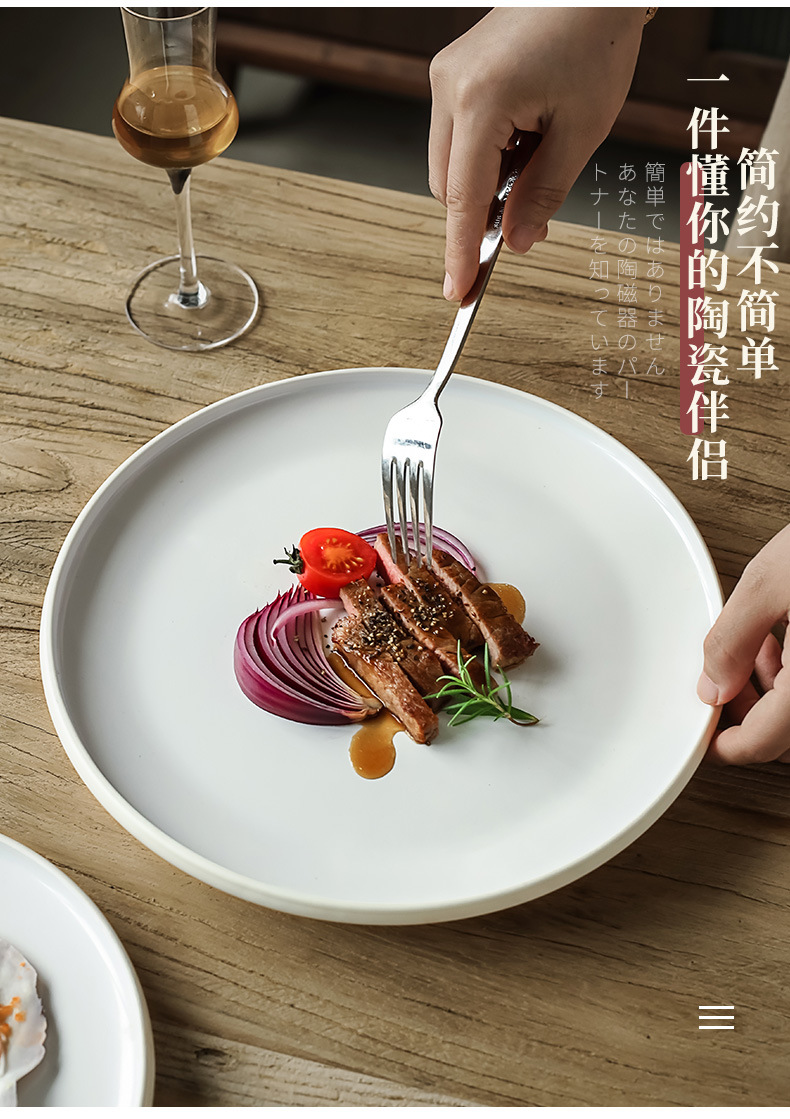Plato de cerámica de disco minimalista nórdico Plato de verduras para el hogar Plato de postre redondo Plato de filete de restaurante Plato de vajilla al por mayor