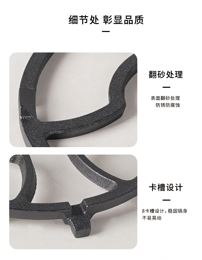 | Especificaciones | Razón para ollas de hierro fundido (un paquete) universal de cuatro garras y cinco garras,Rejillas para ollas de hierro fundido (dos paquetes) de cuatro garras y cinco garras |