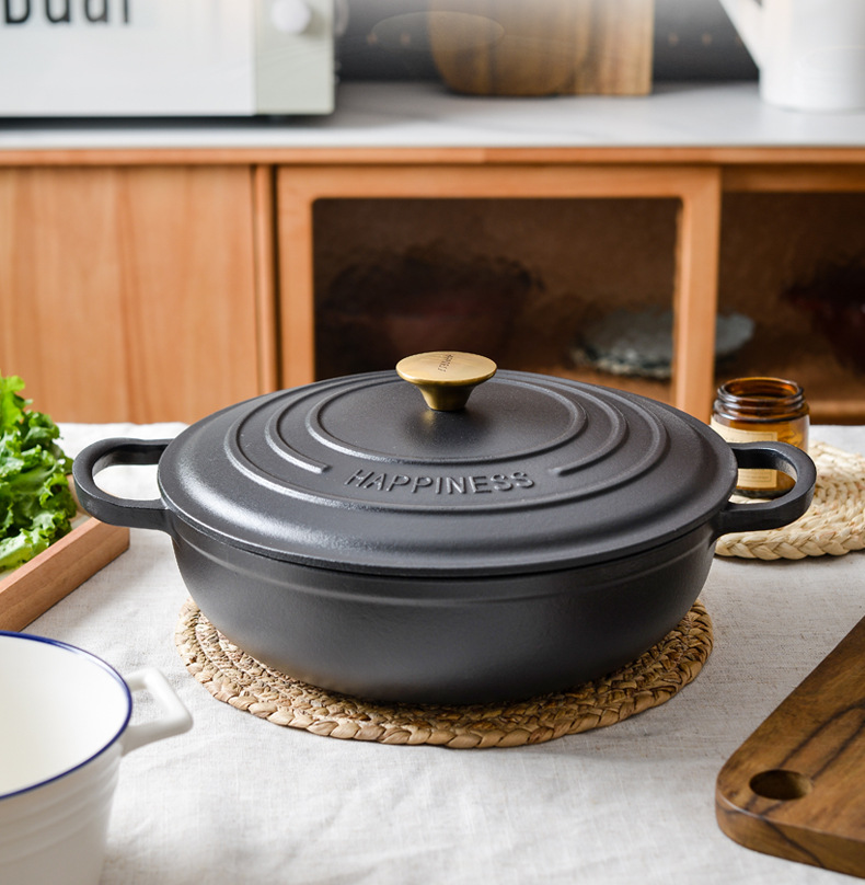 Pequeña felicidad 30cm reina de hierro fundido olla de esmalte multifunción olla de sopa olla de hogar olla sin recubrimiento
