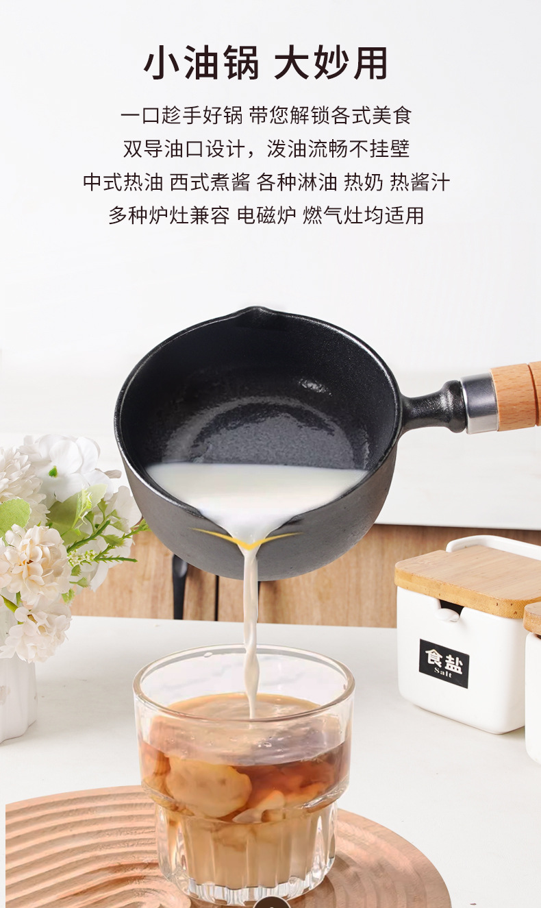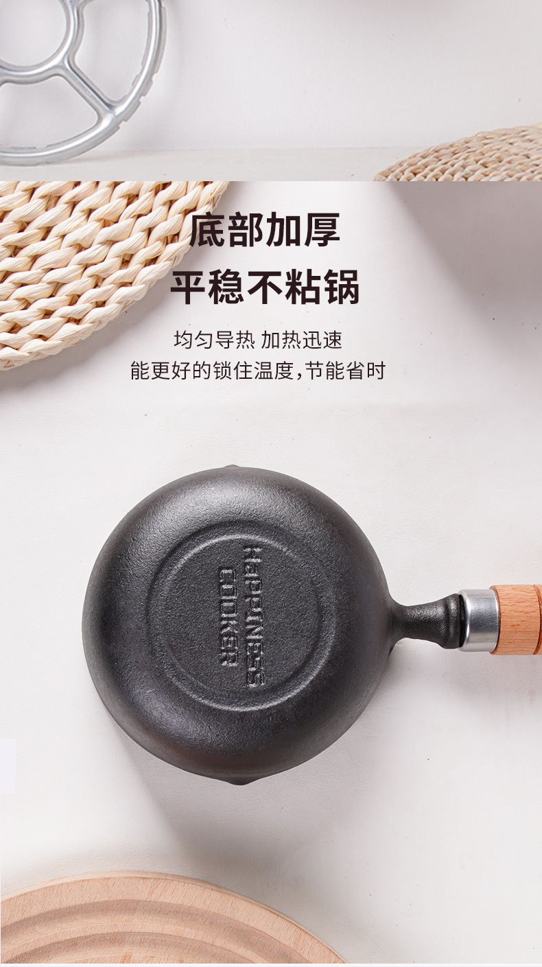 Pequeña felicidad nueva olla de hierro para salpicar huevos, olla de hierro para salpicar huevos, mini olla de hierro doméstica, artefacto de aceite caliente pequeño