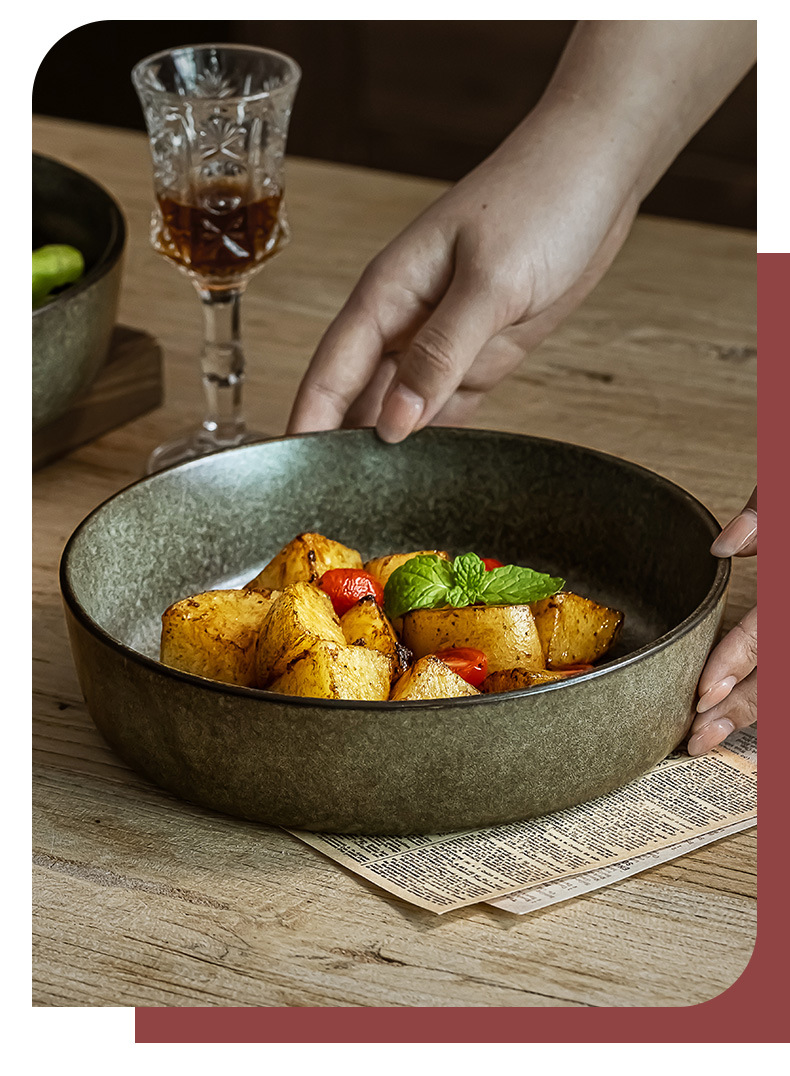 Plato súper artístico, plato de ensalada retro, plato de sopa, plato de cerámica de alta calidad, plato de comedor comercial, vajilla para el hogar