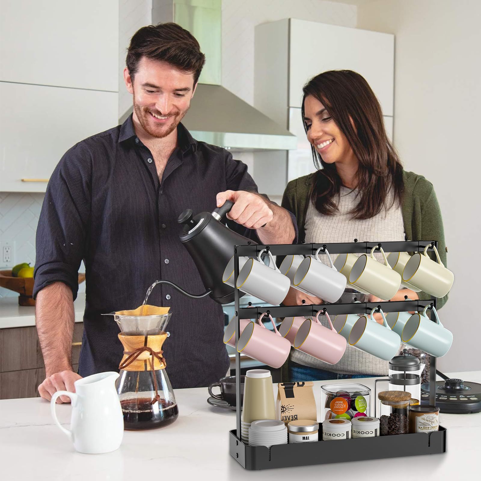 Amazon Taza de agua Rack de almacenamiento sin perforación mesa de cocina Taza de café Rack de almacenamiento de suspensión