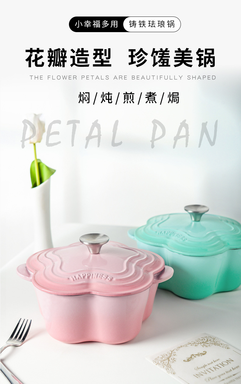 Pequeña Felicidad olla de esmalte de hierro fundido olla de sopa de pétalos esmalte engrosado olla de guiso pequeña olla de sopa doméstica olla antiadherente Cocina de Inducción
