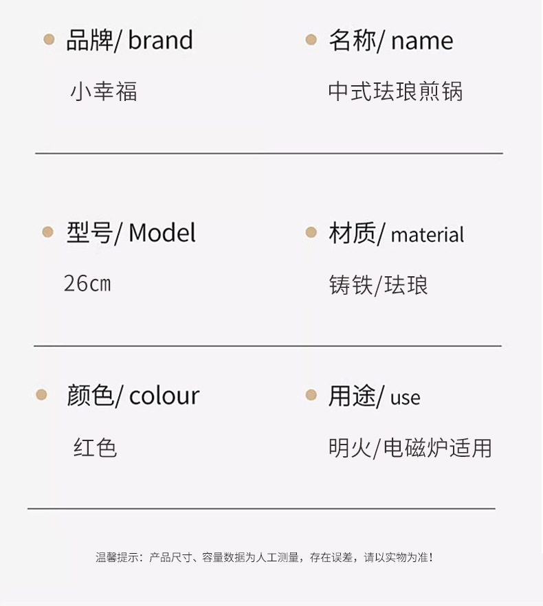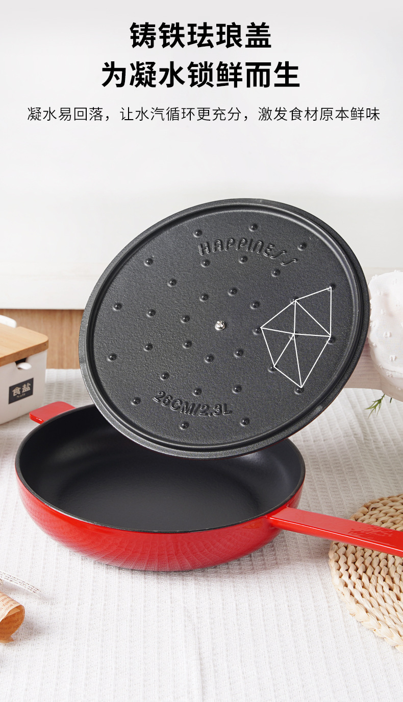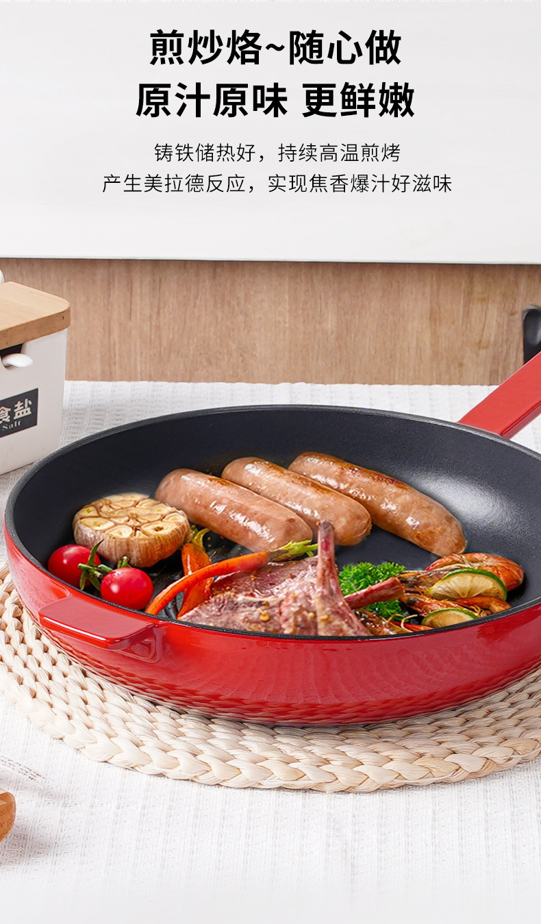Little Happiness 26cm bistec olla de esmalte de hierro fundido Sartén de fondo plano hogar sin recubrimiento olla antiadherente cocina de inducción de gas