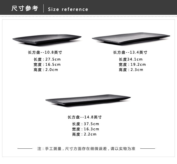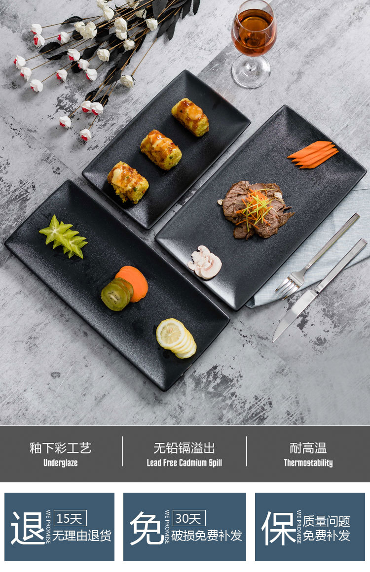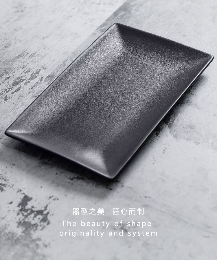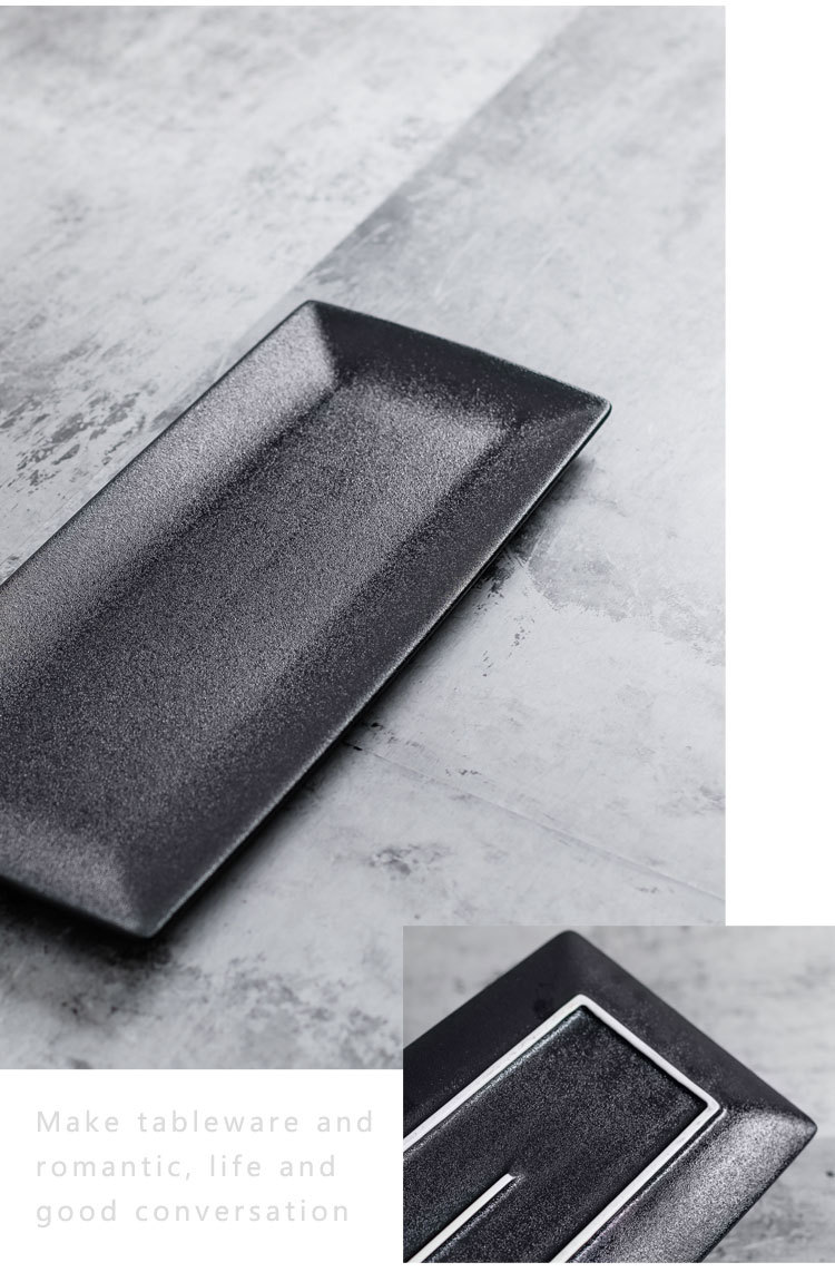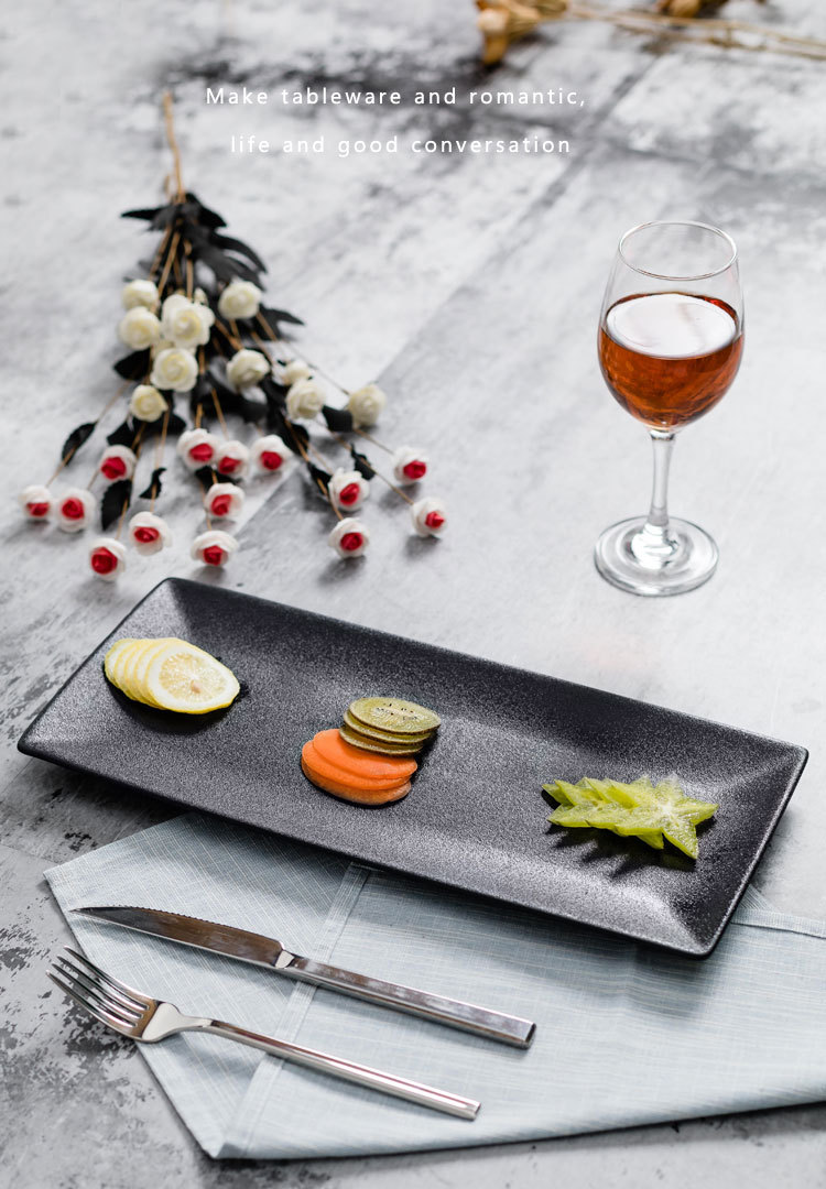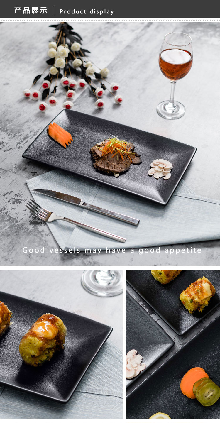 Placa de postre esmerilado de cerámica placa rectangular negra