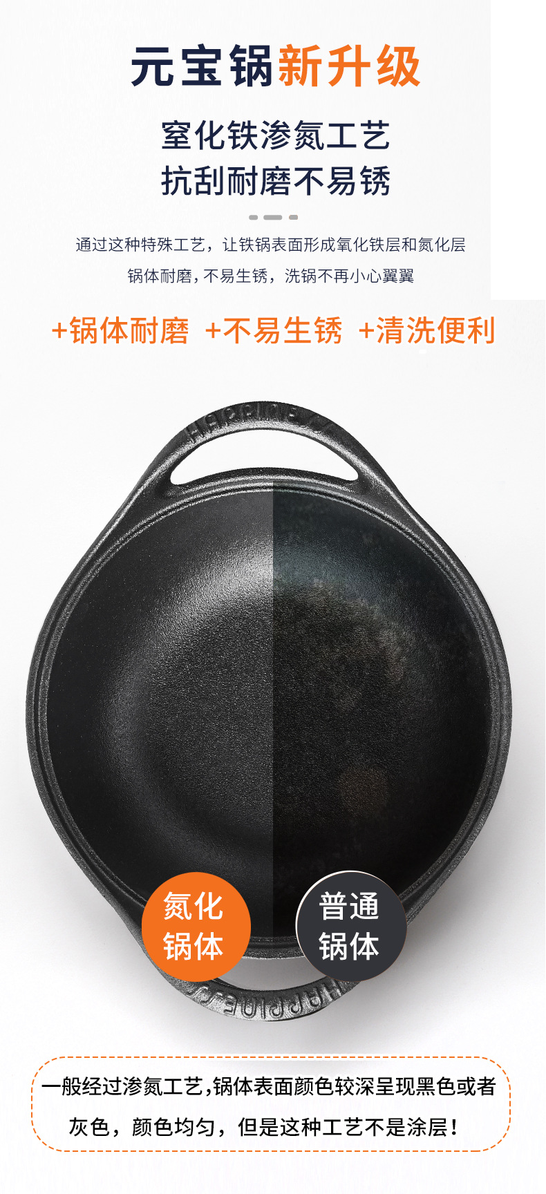 Pequeño feliz nuevo tipo de orejas redondas Yuan Bao, horno de hierro sin recubrimiento, horno electromagnético general