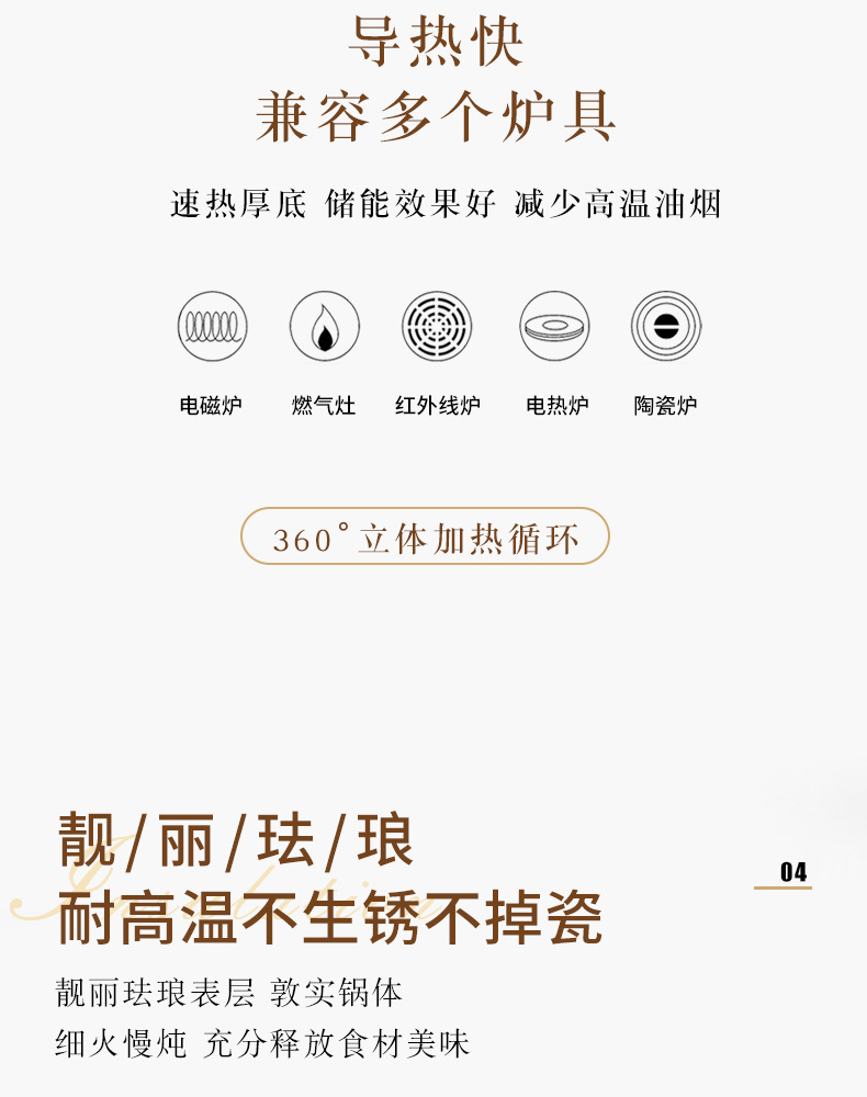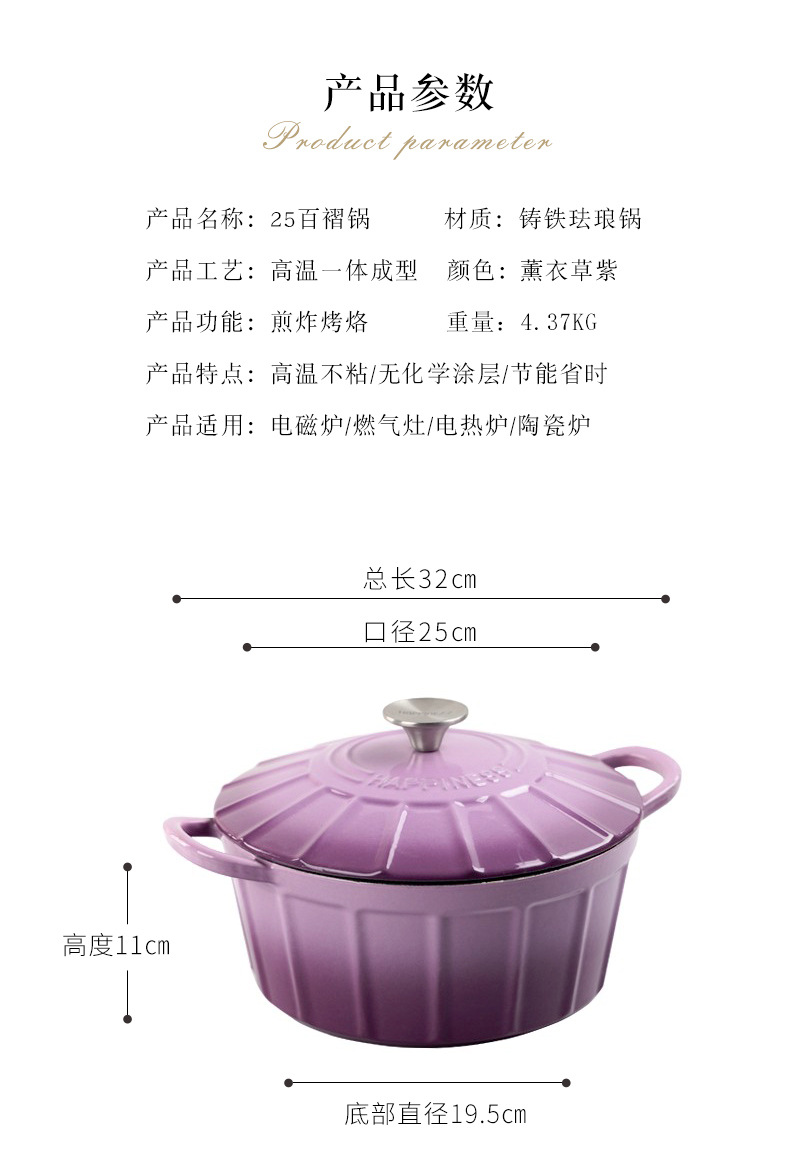 Pequeña felicidad 25cm esmalte plisado olla de sopa doméstica multifuncional antiadherente olla de inducción universal