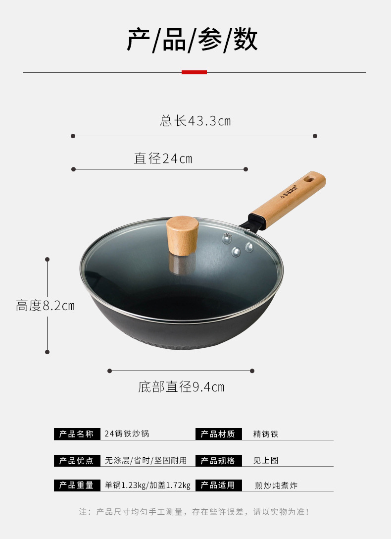 Pequeña felicidad 24cm Mini pequeño wok hogar no recubierto plana antiadherente pan Cocina de Inducción Universal