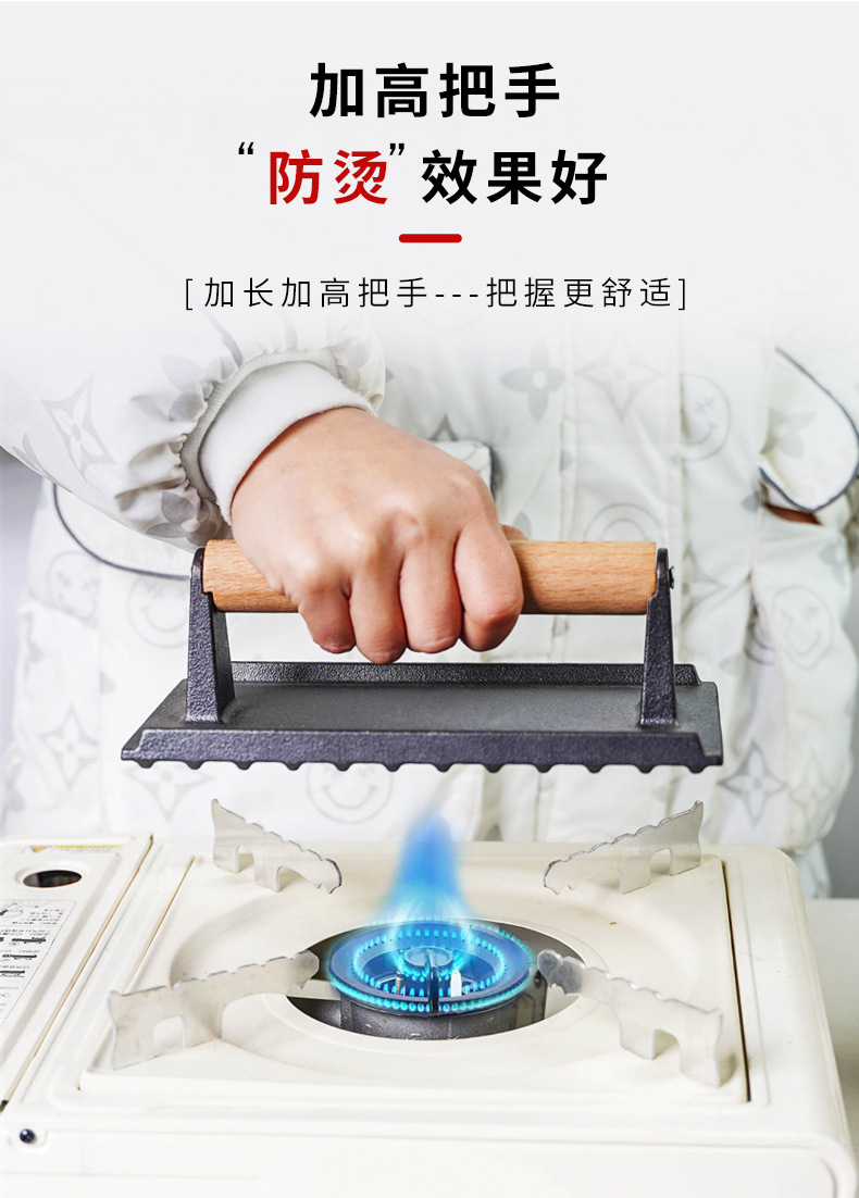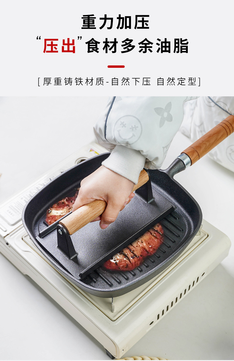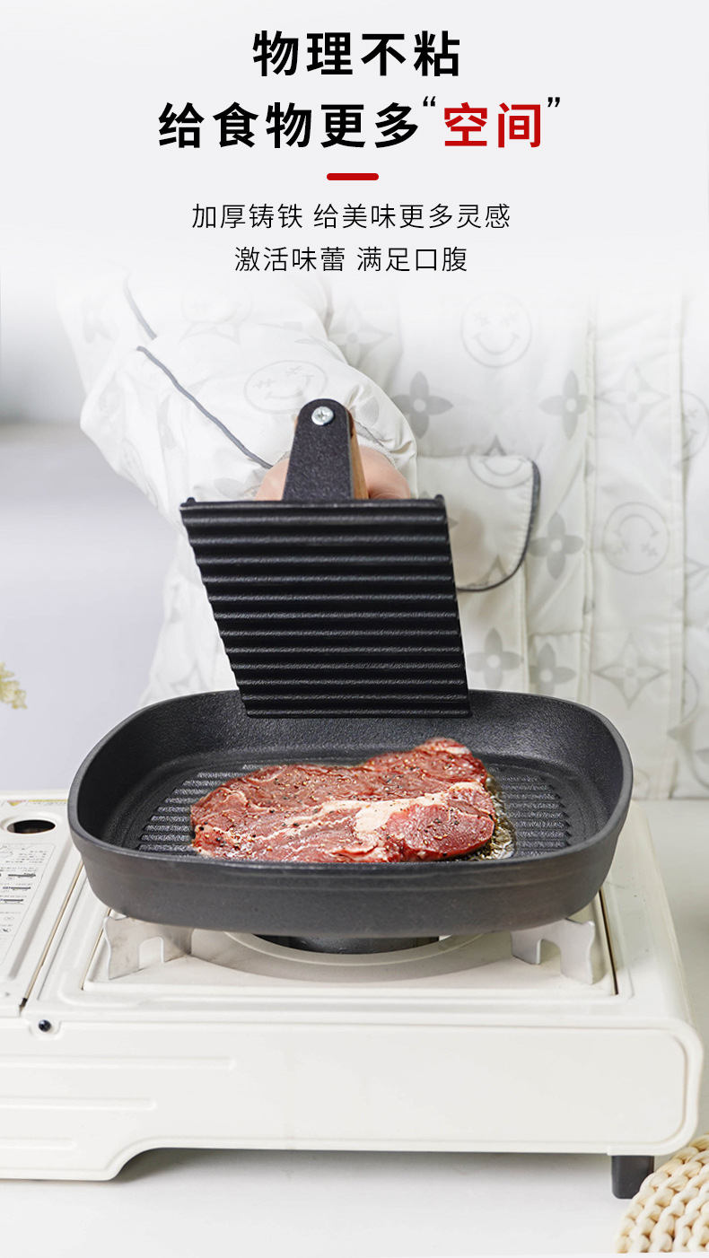 Pequeña felicidad hierro fundido Placa de carne teppanyaki cerdo hierro pastel prensa hogar barbacoa frito filete placa herramienta sin recubrimiento