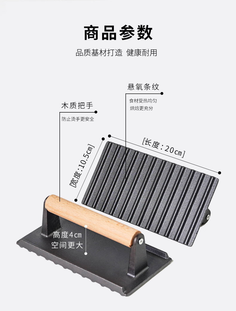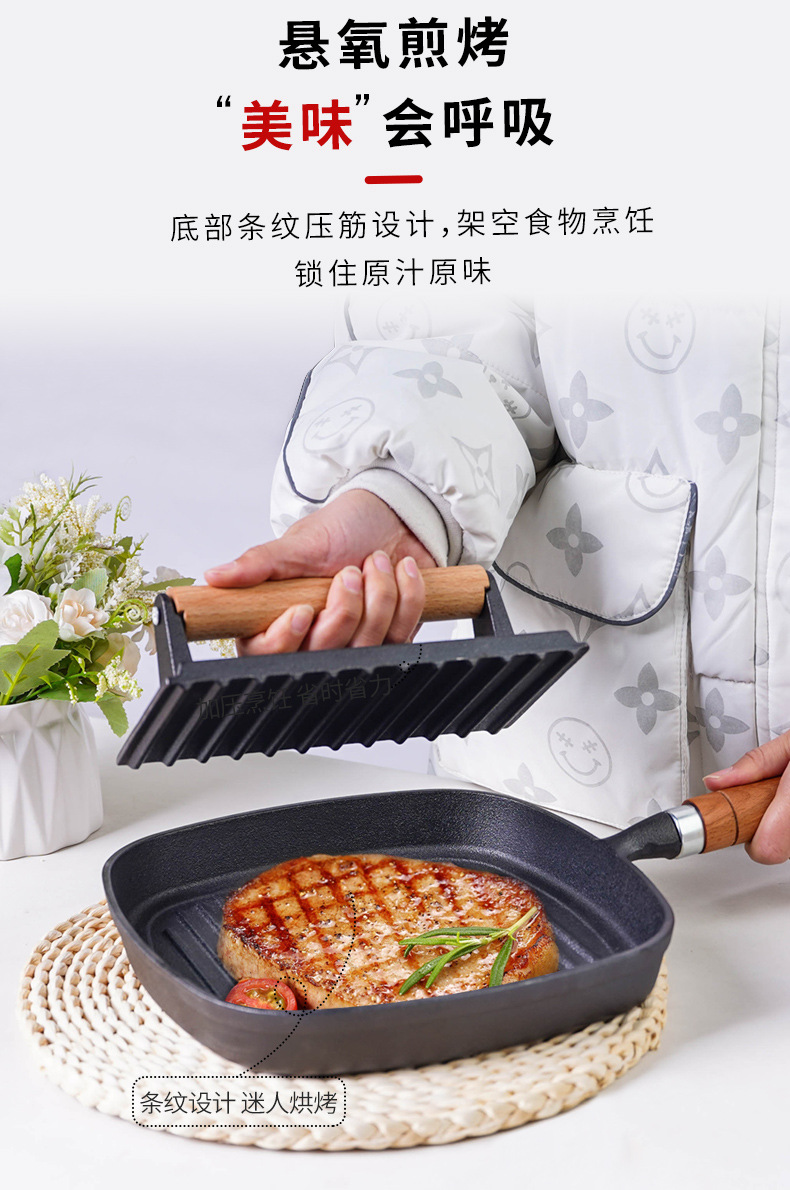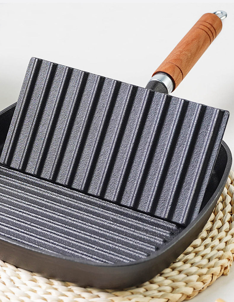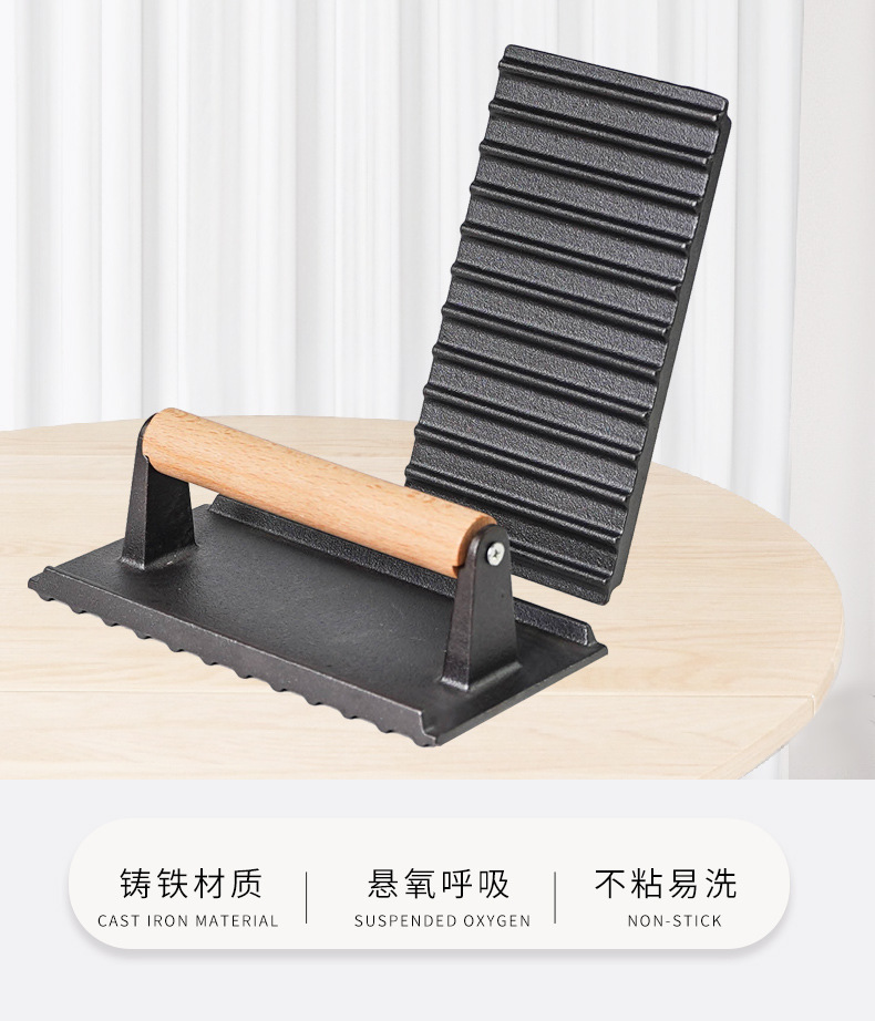 Pequeña felicidad hierro fundido Placa de carne teppanyaki cerdo hierro pastel prensa hogar barbacoa frito filete placa herramienta sin recubrimiento