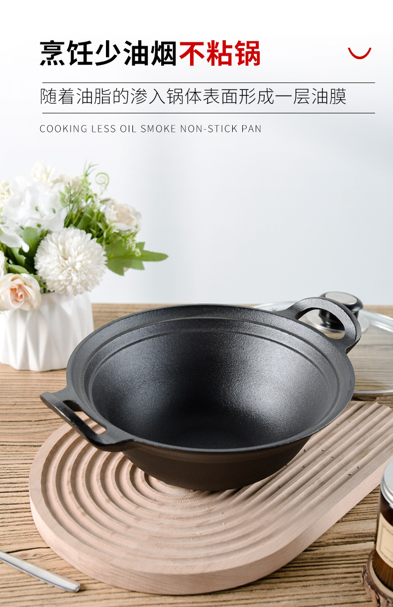 Pequeña felicidad 22cm olla de sopa de hierro fundido olla antiadherente no recubierta olla de sopa doméstica multifuncional engrosada binaural pequeño WOK