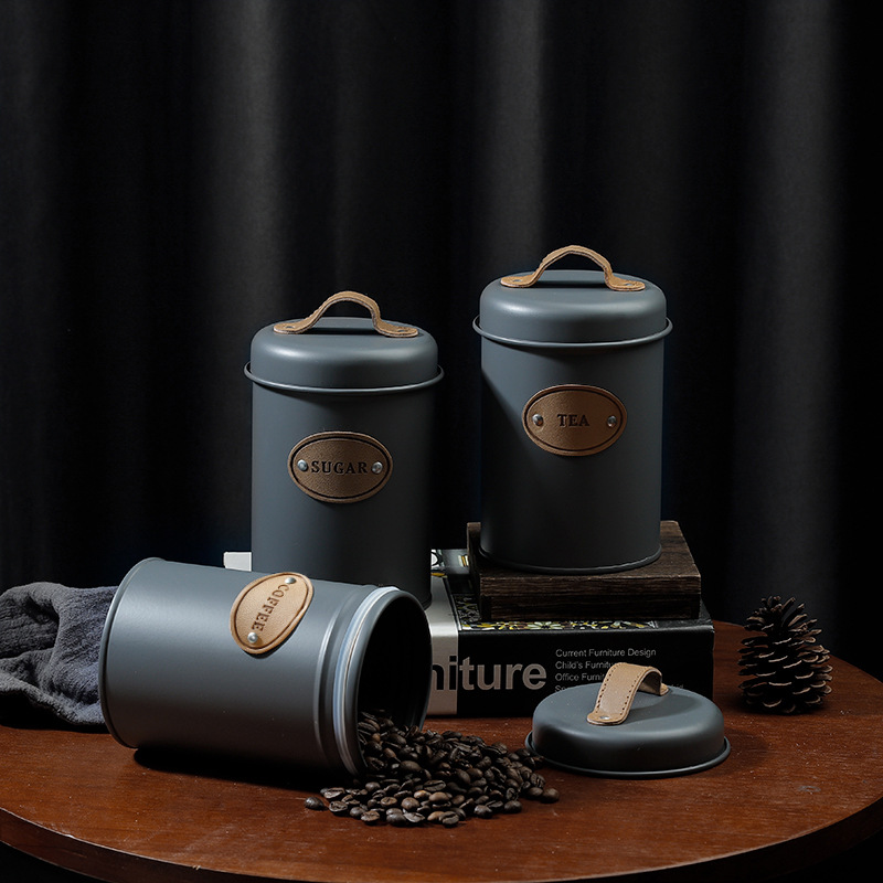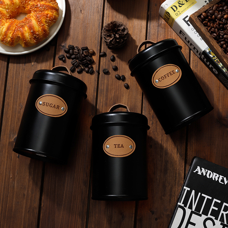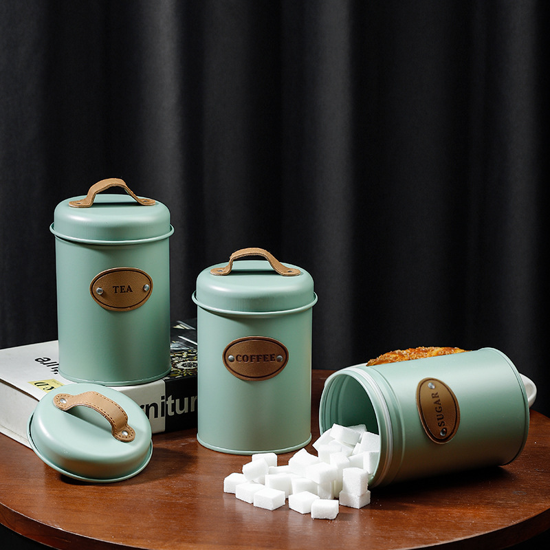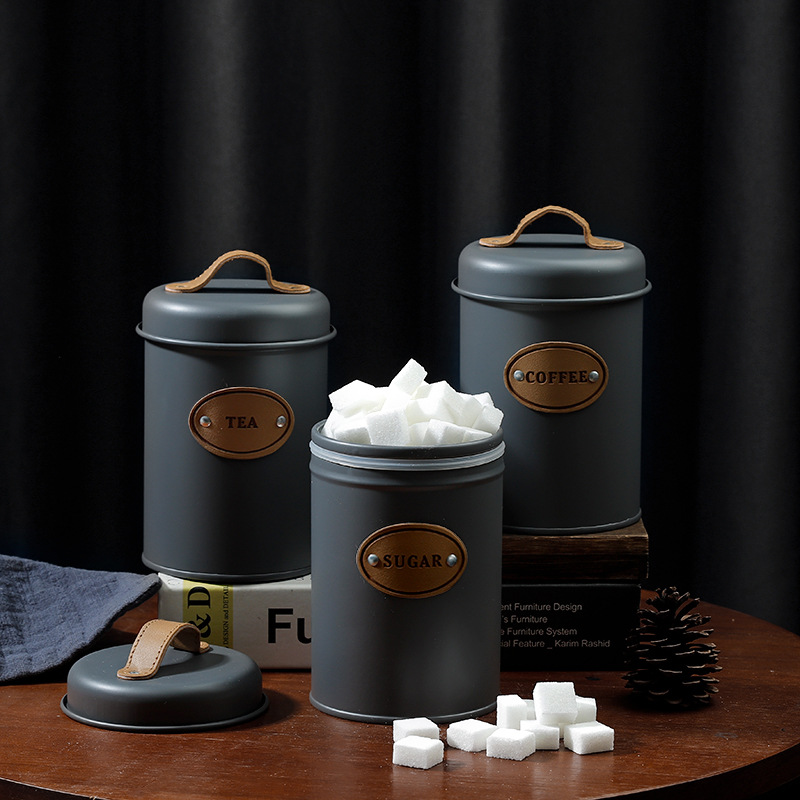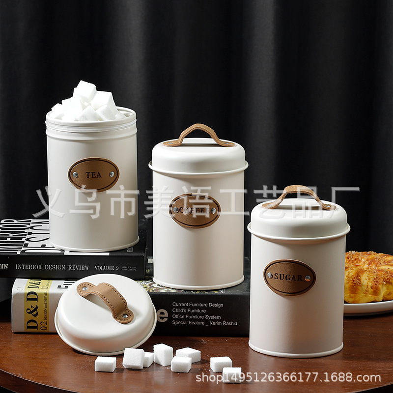 Nuevo Amazon caliente-Venta de almacenamiento de hierro galvanizado tarro a prueba de polvo café azúcar té tarro decorativo decoración de almacenamiento tarro