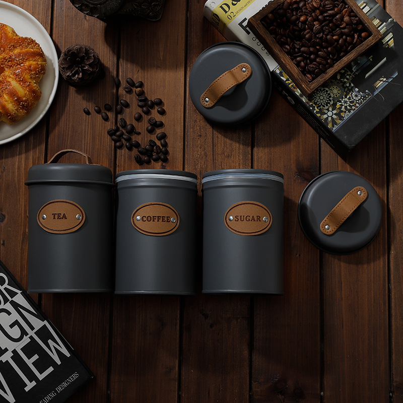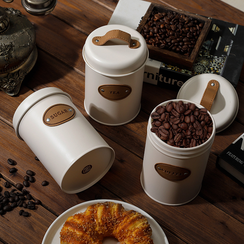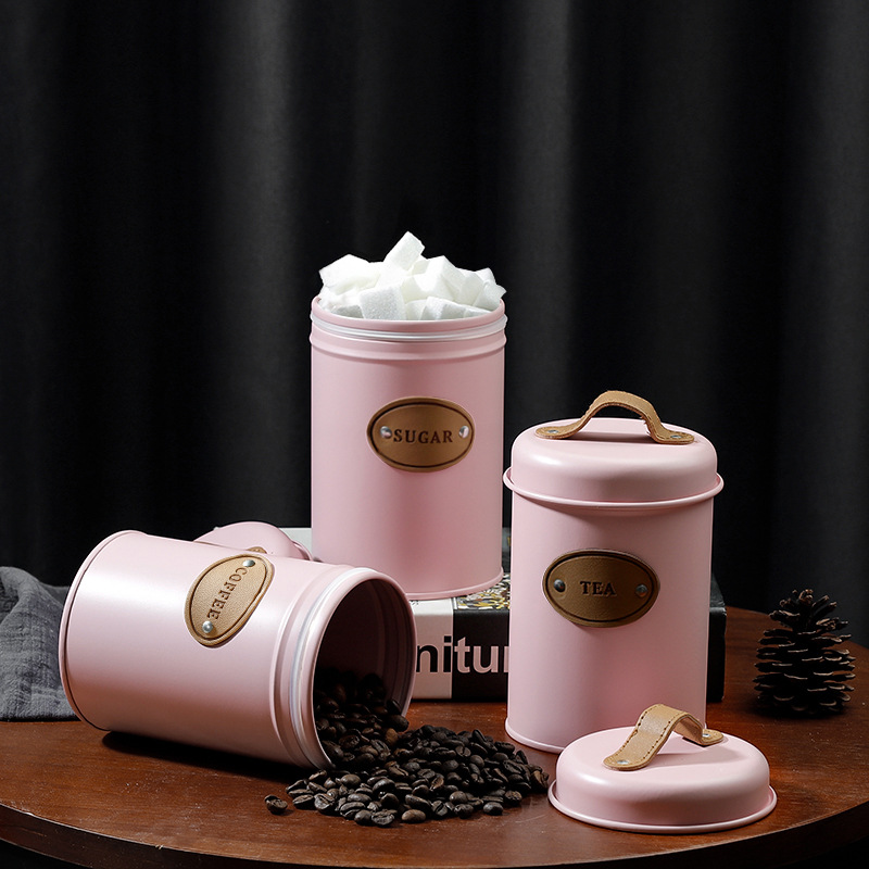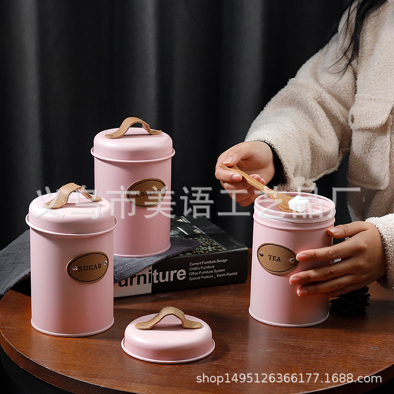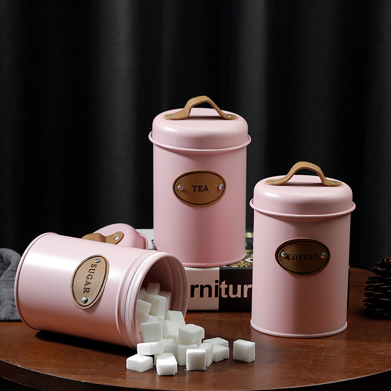 Nuevo Amazon caliente-Venta de almacenamiento de hierro galvanizado tarro a prueba de polvo café azúcar té tarro decorativo decoración de almacenamiento tarro