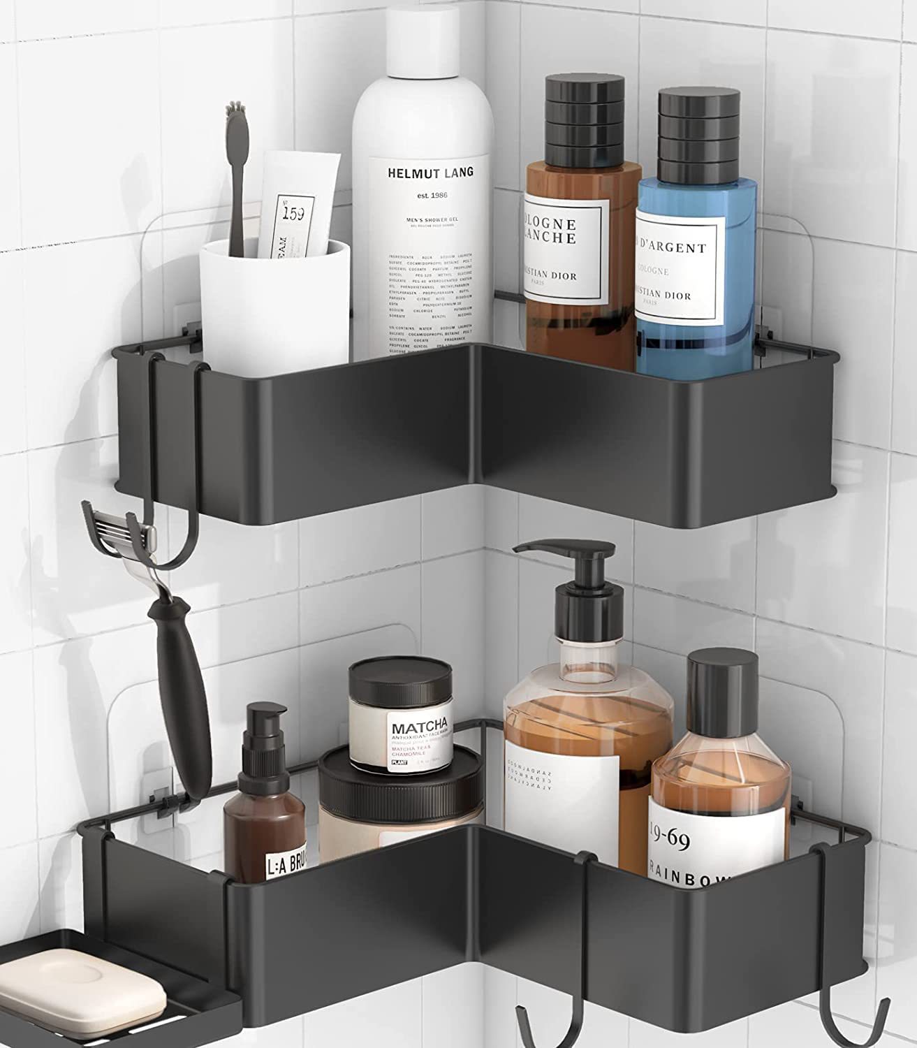 Amazon estantes de pared sin perforación estantes de baño estantes de drenaje estantes de almacenamiento estantes de artículos de baño triángulo esquina de pared