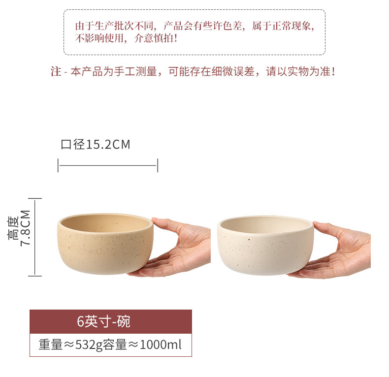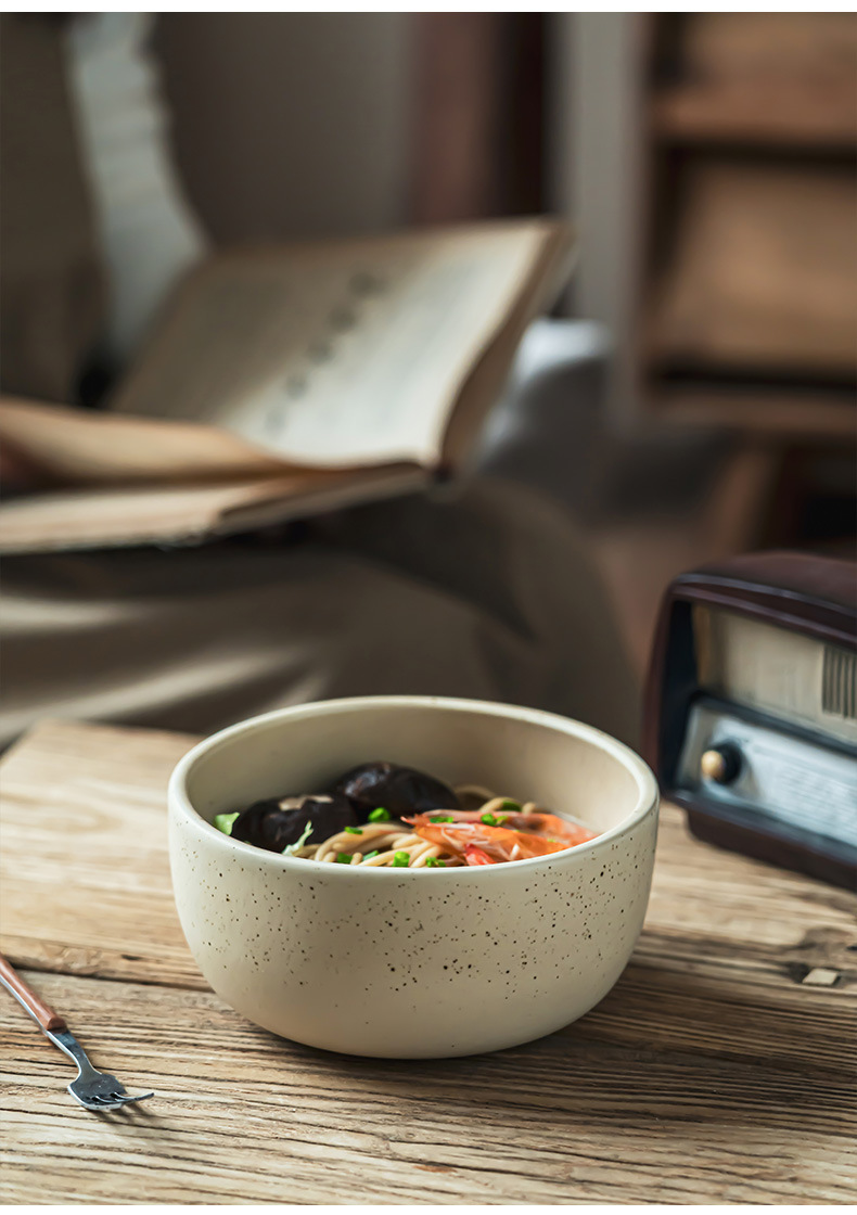 Tacos de ensalada de cerámica brillante de estilo japonés, tazón de fideos más grueso, tazón de cubiertos domésticos, tazón de desayuno retro, tazón de verduras, tazón de sopa