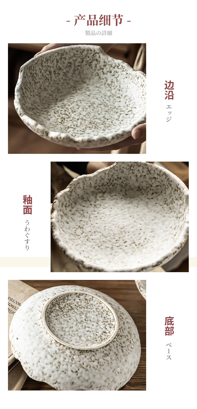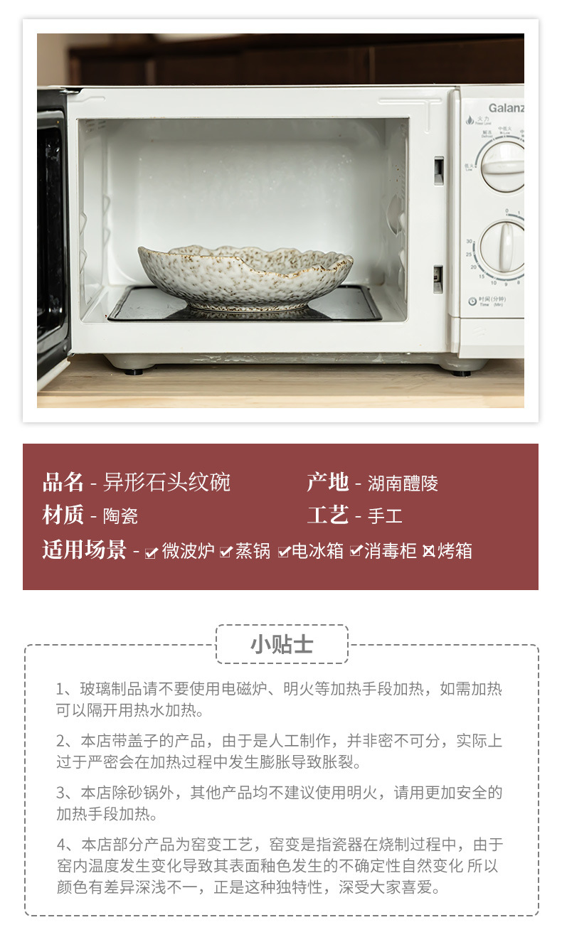 Concepción artística Tazo de cerámica estampado de piedra Tazo de estilo japonés Tazo de ensalada Tazo de cerámica personalizado Tazo de platos de restaurante