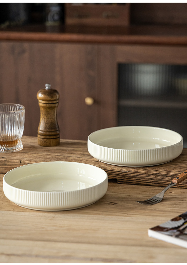 Plato básico Plato profundo de cerámica de color sólido Plato de verduras para el hogar de estilo nórdico Tazón grande redondo Plato de sopa Plato de ensalada Tazón de vajilla