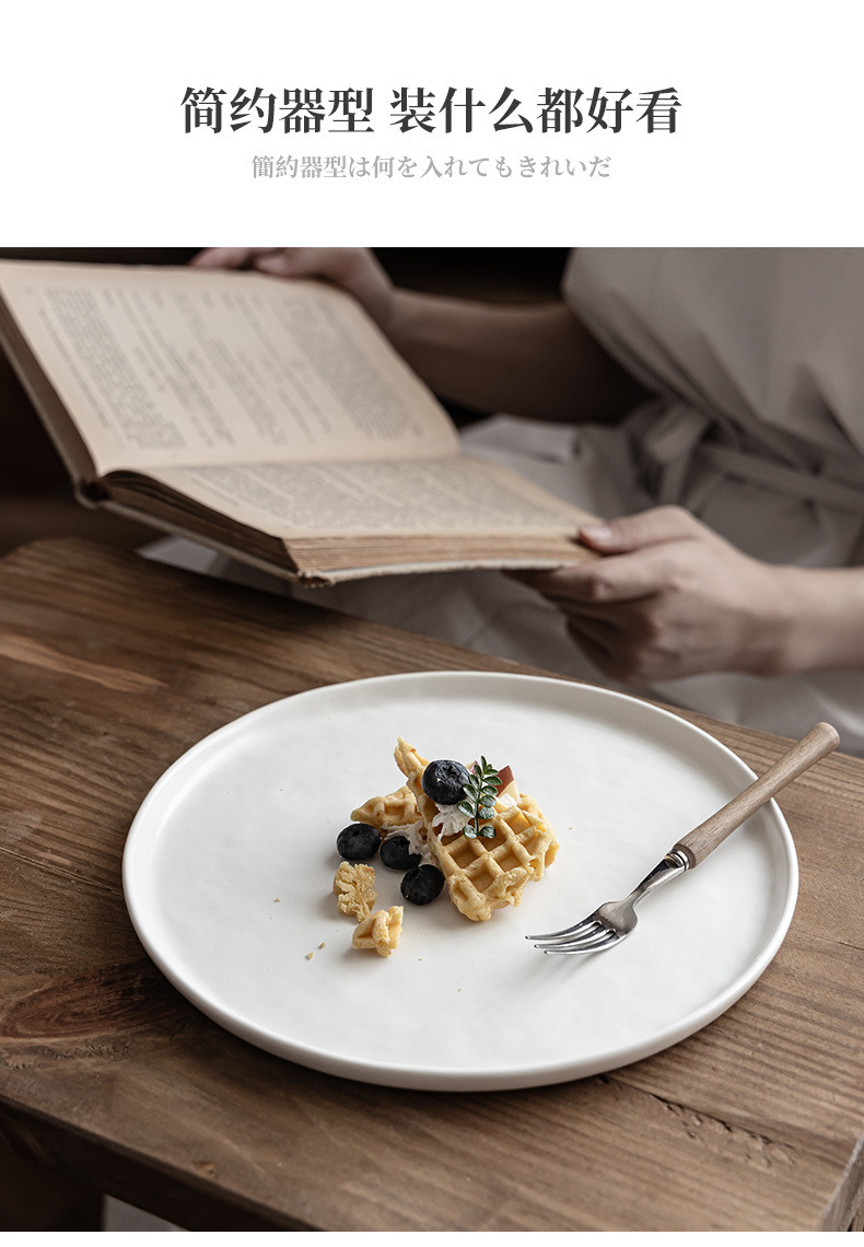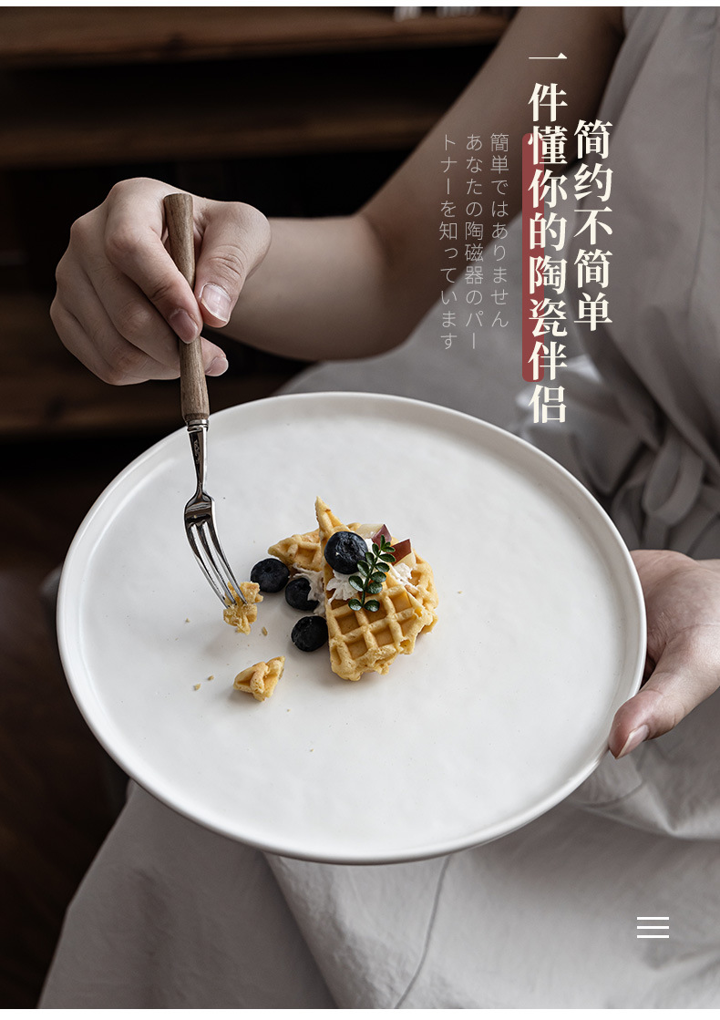 Plato de cerámica mate retro de lujo ligero, plato de platos caseros de color sólido, plato de pasta, plato de ensalada, plato de filete de comida occidental