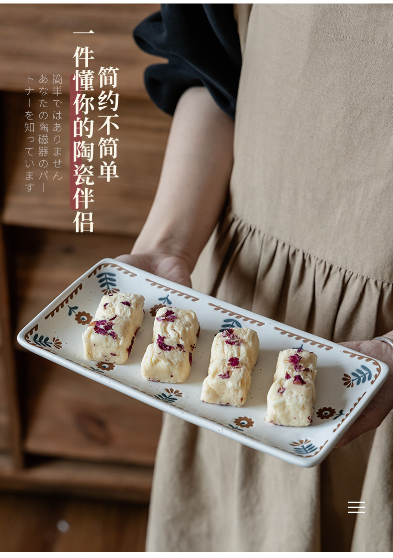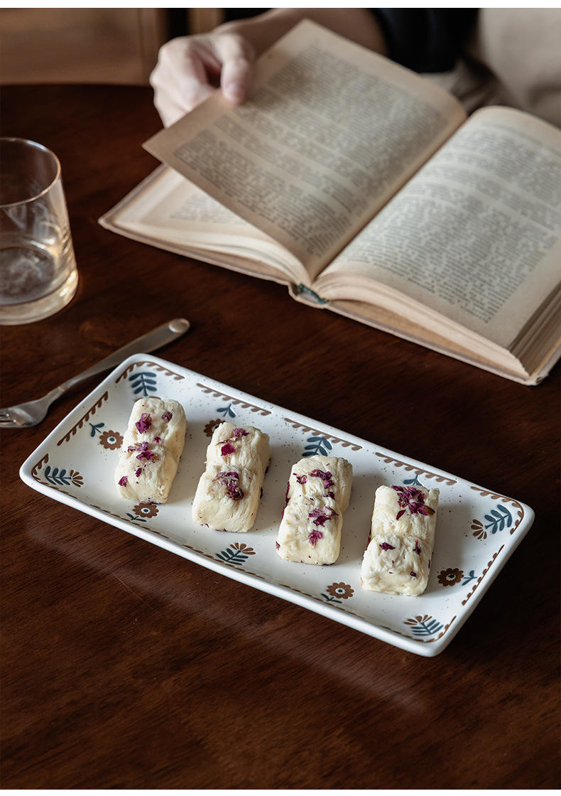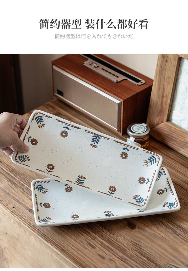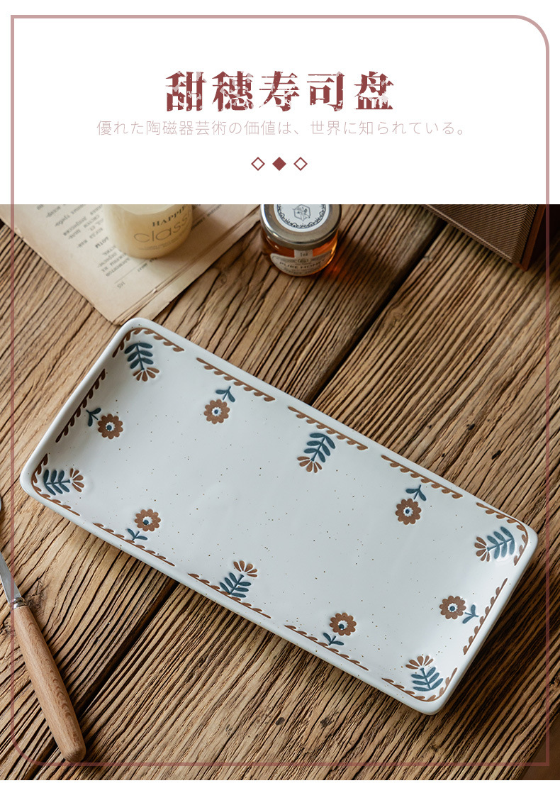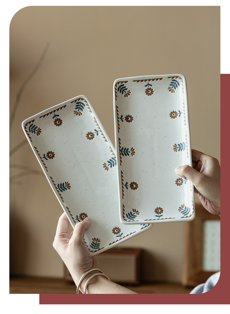 Plato de cerámica de cártamo pequeño pintado a mano japonés Plato de sushi de restaurante Plato rectangular para el hogar Plato de postre para el hogar Plato de bocadillos