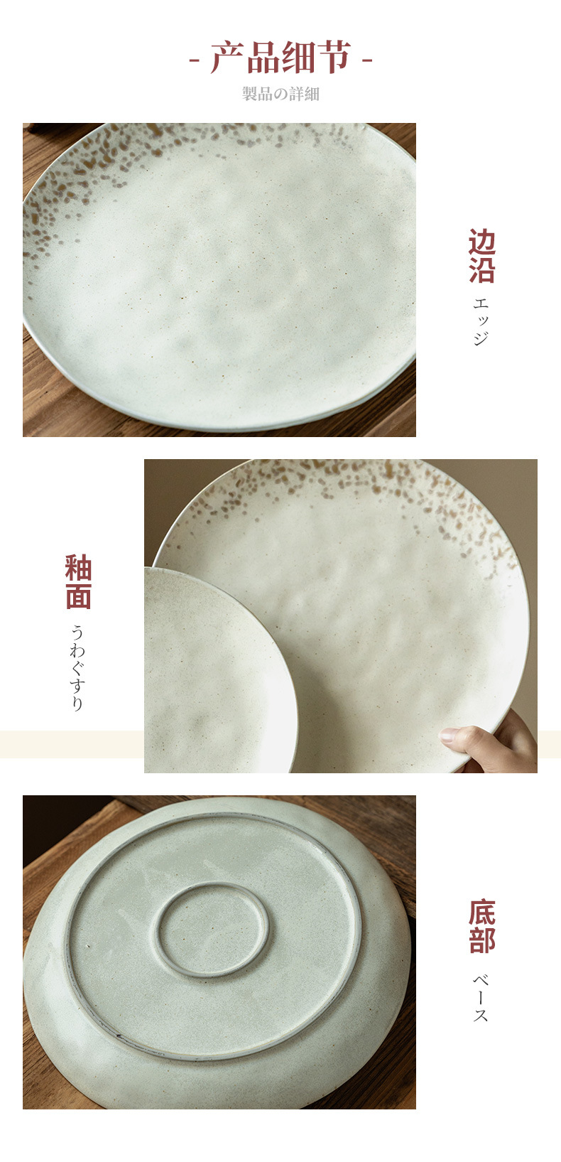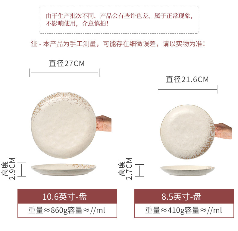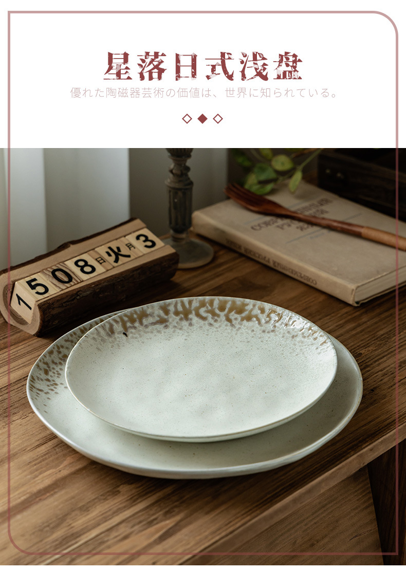 Plato de cerámica de textura retro, plato de filete occidental, plato redondo doméstico japonés al por mayor, platos de platos, platos de pasta