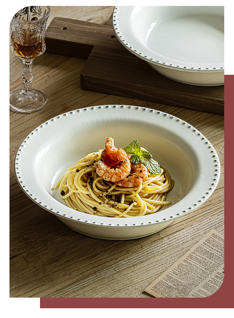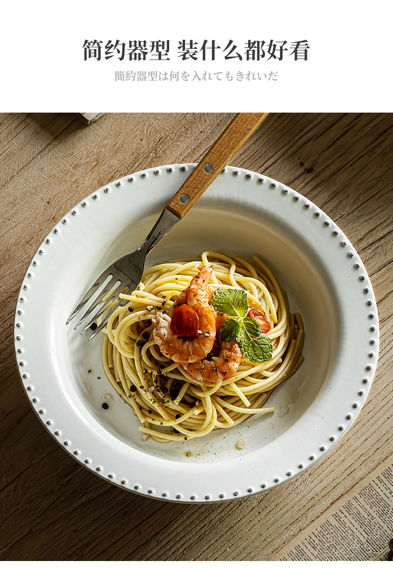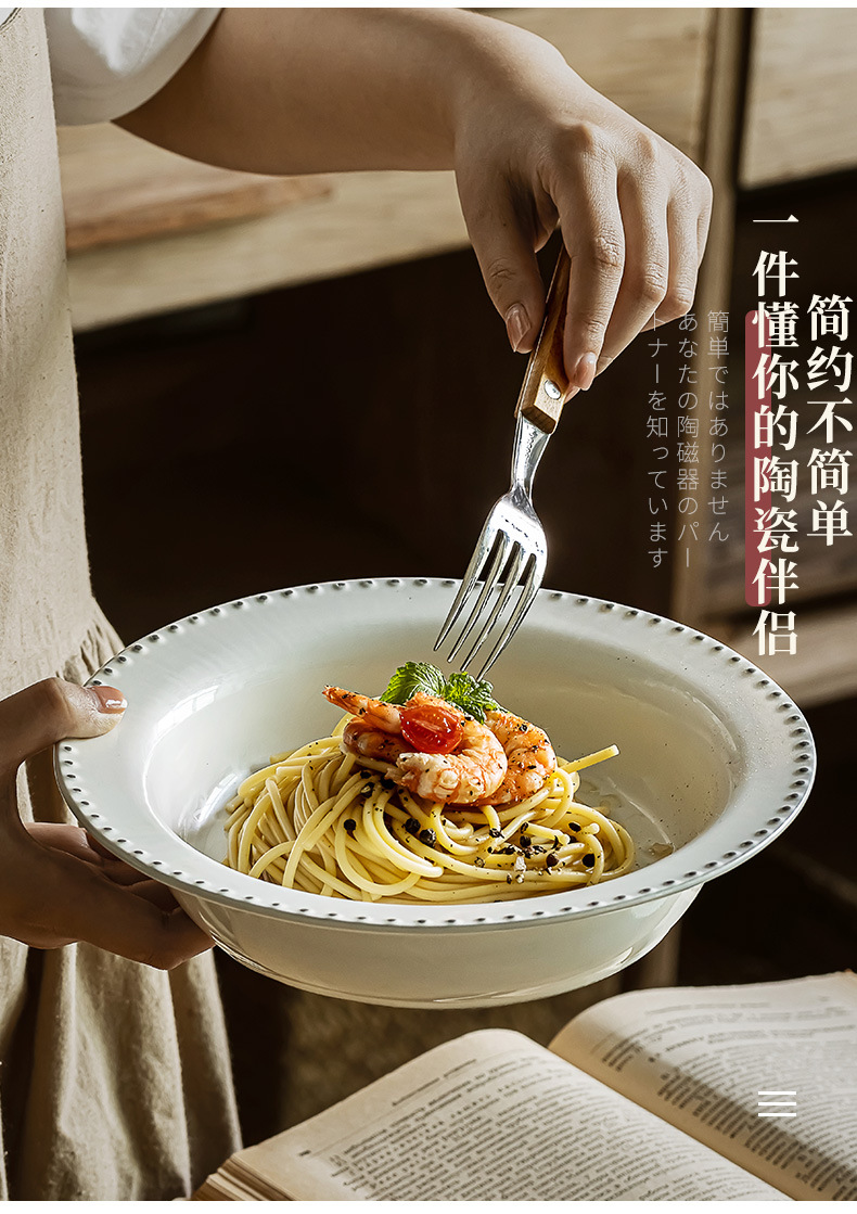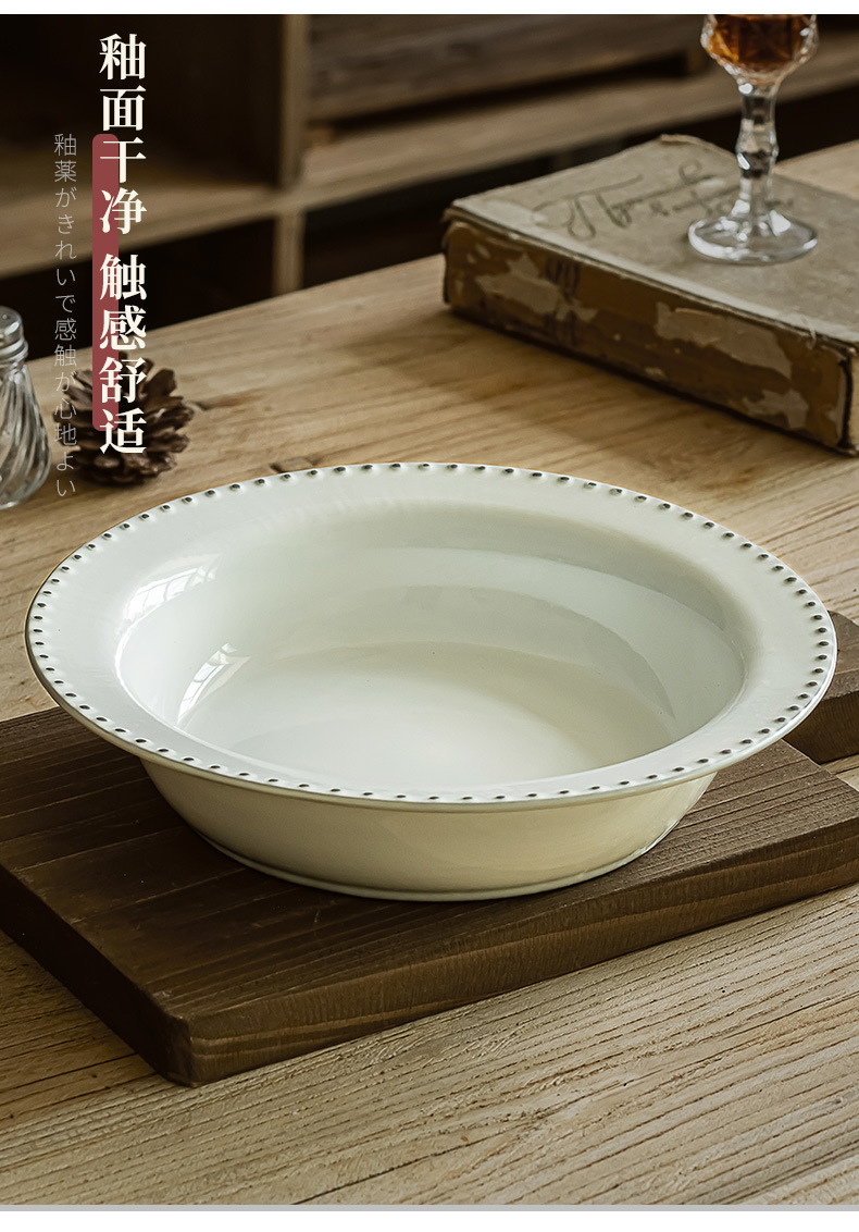 Cuenco de sombrero de paja de perlas en relieve de estilo retro Cuenco grande de cerámica para el hogar Cuenco de sopa Cuenco de ensalada Cuenco de pasta Plato de restaurante