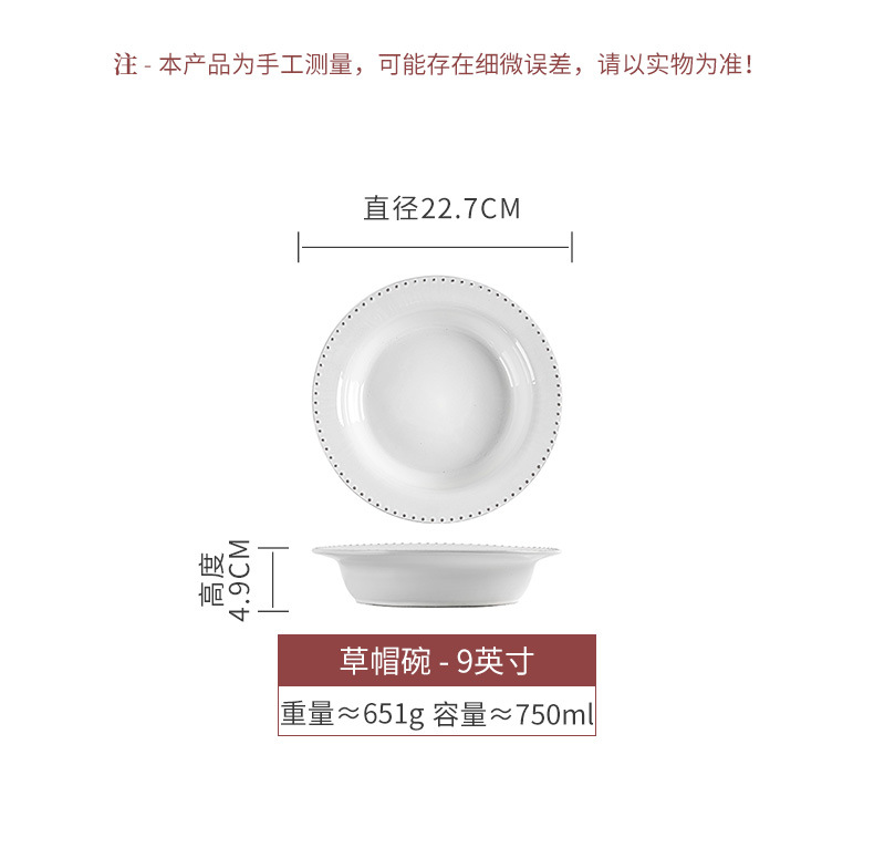 | Color | Cuenco de sombrero de paja Herr 9 pulgadas gris (ligeramente defectuoso),Placa de punta de cuentas Hull de color blanco poco profundo de 8,4 pulgadas (ligeramente defectuoso) |